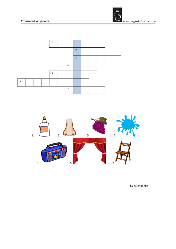 www.english-tea-time.com Crossword krzyżówka 1 2 3 4 5 6 7 1. 2. 5. 3. 6. 4. 7. by Michalinka