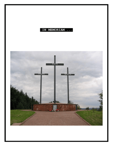 IN MEMORIAM ... IN MEMORIAM ... Przemówienie, jakie prezydent RP Lech Kaczyński miał wygłosić 10 kwietnia na Polskim Cmentarzu Wojennym w Katyniu. Discours qui aurait dû être prononcé par le Président de la République Polonaise Lech Kaczyński au Cimetière Militaire Polonais de Katyn le 10 avril 2010 Przemówienie, jakie prezydent RP Lech Kaczyński miał wygłosić 10 kwietnia na Polskim Cmentarzu Wojennym w Katyniu. W kwietniu 1940 roku ponad 21 tysięcy polskich jeńców z obozów i więzień NKWD zostało zamordowanych. Tej zbrodni ludobójstwa dokonano z woli Stalina, na rozkaz najwyższych władz Związku Sowieckiego. Sojusz III Rzeszy i ZSRR, pakt RibbentropMołotow i agresja na Polskę 17 września 1939 roku znalazły swoją wstrząsającą kulminację w zbrodni katyńskiej. Nie tylko w lasach Katynia, także w Twerze, Charkowie i w innych, znanych i jeszcze nieznanych miejscach straceń wymordowano obywateli II Rzeczypospolitej, ludzi tworzących podstawę naszej państwowości, nieugiętych w służbie ojczyzny. W tym samym czasie rodziny pomordowanych i tysiące mieszkańców przedwojennych Kresów były zsyłane w głąb Związku Sowieckiego, gdzie ich niewypowiedziane cierpienia znaczyły drogę polskiej Golgoty Wschodu. Najbardziej tragiczną stacją tej drogi był Katyń. Polskich oficerów, duchownych, urzędników, policjantów, funkcjonariuszy straży granicznej i służby więziennej zgładzono bez procesów i wyroków. Byli ofiarami niewypowiedzianej wojny. Zostali zamordowani z pogwałceniem praw i konwencji cywilizowanego świata. Zdeptano ich godność jako żołnierzy, Polaków i ludzi. Doły śmierci na zawsze miały ukryć ciała pomordowanych i prawdę o zbrodni. Świat miał się nigdy nie dowiedzieć. Rodzinom ofiar odebrano prawo do publicznej żałoby, do opłakania i godnego upamiętnienia najbliższych. Ziemia przykryła ślady zbrodni, a kłamstwo miało wymazać ją z ludzkiej pamięci. Ukrywanie prawdy o Katyniu – efekt decyzji tych, którzy do zbrodni doprowadzili – stało się jednym z fundamentów polityki komunistów w powojennej Polsce: założycielskim kłamstwem PRL. Był to czas, kiedy za pamięć i prawdę o Katyniu płaciło się wysoką cenę. Jednak bliscy pomordowanych i inni, odważni ludzie trwali wiernie przy tej pamięci, bronili jej i przekazywali kolejnym pokoleniom Polaków. Przenieśli ją przez czas komunistycznych rządów i powierzyli rodakom wolnej, niepodległej Polsce. Dlatego im wszystkim, a zwłaszcza Rodzinom Katyńskim, jesteśmy winni szacunek i wdzięczność. W imieniu Rzeczypospolitej składam najgłębsze podziękowanie za to, że broniąc pamięci o swoich bliskich, ocaliliście Państwo jakże ważny wymiar naszej polskiej świadomości i tożsamości. Katyń stał się bolesną raną polskiej historii, ale także na długie dziesięciolecia zatruł relacje między Polakami i Rosjanami. Sprawmy, by katyńska rana mogła się wreszcie w pełni zagoić i zabliźnić. Jesteśmy już na tej drodze. My, Polacy, doceniamy działania Rosjan z ostatnich lat. Tą drogą, która zbliża nasze narody, powinniśmy iść dalej, nie zatrzymując się na niej ani nie cofając. Wszystkie okoliczności zbrodni katyńskiej muszą zostać do końca zbadane i wyjaśnione. Ważne jest, by została potwierdzona prawnie niewinność ofiar, by ujawnione zostały wszystkie dokumenty dotyczące tej zbrodni. Aby kłamstwo katyńskie zniknęło na zawsze z przestrzeni publicznej. Domagamy się tych działań przede wszystkim ze względu na pamięć ofiar i szacunek dla cierpienia ich rodzin. Ale domagamy się ich także w imię wspólnych wartości, które muszą tworzyć fundament zaufania i partnerstwa pomiędzy sąsiednimi narodami w całej Europie. Oddajmy wspólnie hołd pomordowanym bohaterom! Cześć Ich pamięci! i pomódlmy się nad ich głowami. Chwała Discours qui aurait dû être prononcé par le Président de la République Polonaise Lech Kaczyński au Cimetière Militaire Polonais de Katyn le 10 avril 2010 En avril 1940, plus de 21 000 prisonniers polonais détenus dans les camps et les prisons du NKVD (ex-KGB) ont été tués. Ce génocide a été commis sur l’ordre de Staline et des plus hautes autorités du gouvernement de l’Union Soviétique. L’entente entre le 3ème Reich et l’URSS, le pacte Ribbentrop-Molotov et l’agression de la Pologne par l’Union Soviétique le 17 septembre 1939 ont trouvé leur apogée dans le crime de Katyn. Les exécutions des meilleurs citoyens de la 2ème République Polonaise, chargés de créer les bases du pays renaissant, n’ont pas seulement eu lieu dans les forêts de Katyn, mais également à Twer, Charkow et dans d’autres lieux connus et inconnus. Simultanément, les familles des victimes et des citoyens des confins d’avant-guerre ont été déportées au fond de l’Union Soviétique, où leur souffrance indicible a tracé le chemin polonais du Golgotha de l’Est. La station la plus tragique de ce chemin était Katyn. Les officiers polonais, les hommes d’Eglise, les fonctionnaires de l’administration, les gardiens de prison, ont été exterminés sans procès et sans verdict. Ils furent les victimes d’une guerre non déclarée. Ils furent tués en violation des lois et des conventions du monde civilisé. La dignité des soldats, des Polonais et des Hommes a été piétinée. Le monde ne devait rien savoir. Les familles ont été privées du droit de faire leur deuil public et de commémorer et pleurer leurs proches. La terre a recouvert les traces du meurtre et le mensonge aurait dû les effacer de la mémoire humaine. Cacher la vérité de Katyn – effet de la décision de ceux qui ont commis ces meurtres – est devenu un fondement de la politique des communistes de la Pologne d’après-guerre : cette Pologne Populaire est née sur un mensonge. A cette époque, on payait un prix très élevé pour préserver la vérité et la mémoire sur Katyn. 