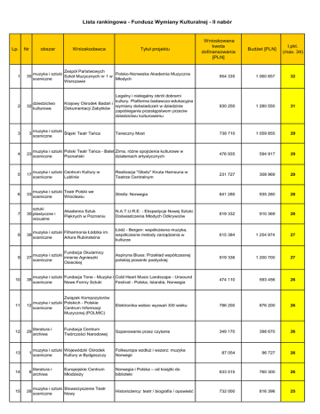 lista rankingowa - II nabór - Fundusz Wymiany Kulturalnej