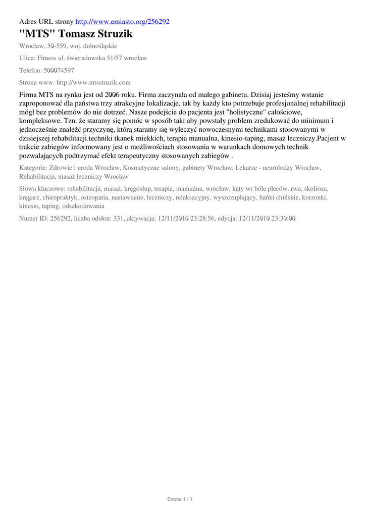 "MTS" Tomasz Struzik, Wroclaw, Fitness ul