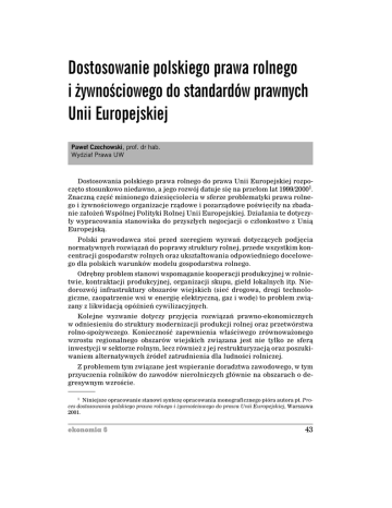 Dostosowanie polskiego prawa rolnego i ¿ywnoœciowego do