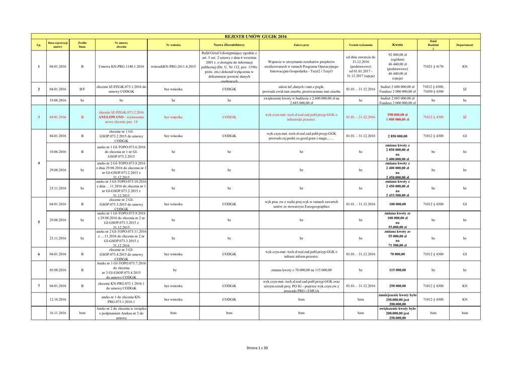 REJESTR UMÓW GUGIK 2016