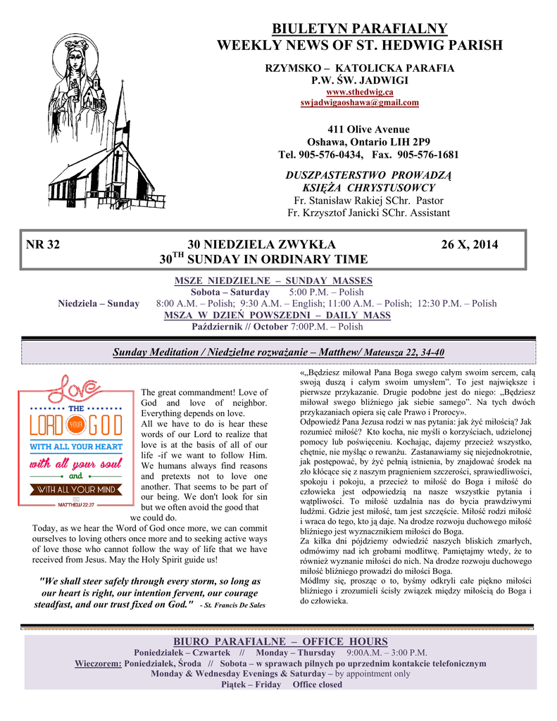 BIULETYN PARAFIALNY WEEKLY NEWS OF ST. HEDWIG PARISH