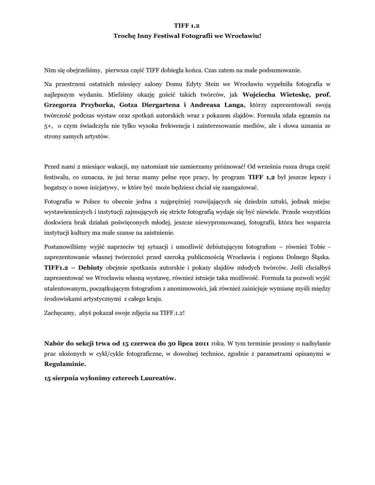 TIFF 1.2 Trochę Inny Festiwal Fotografii we Wrocławiu! Nim się