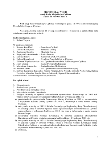 Protokół z VIII sesji z 21 czerwca 2011 rok - BIP
