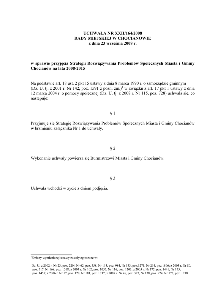 UCHWAŁA NR XXII/164/2008 RADY MIEJSKIEJ W CHOCIANOWIE