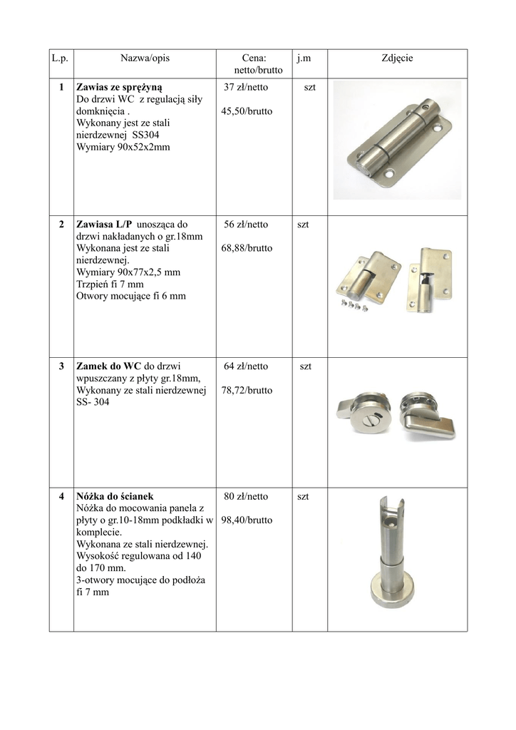 L.p. Nazwa/opis Cena: netto/brutto j.m Zdjęcie 1 Zawias ze sprężyną