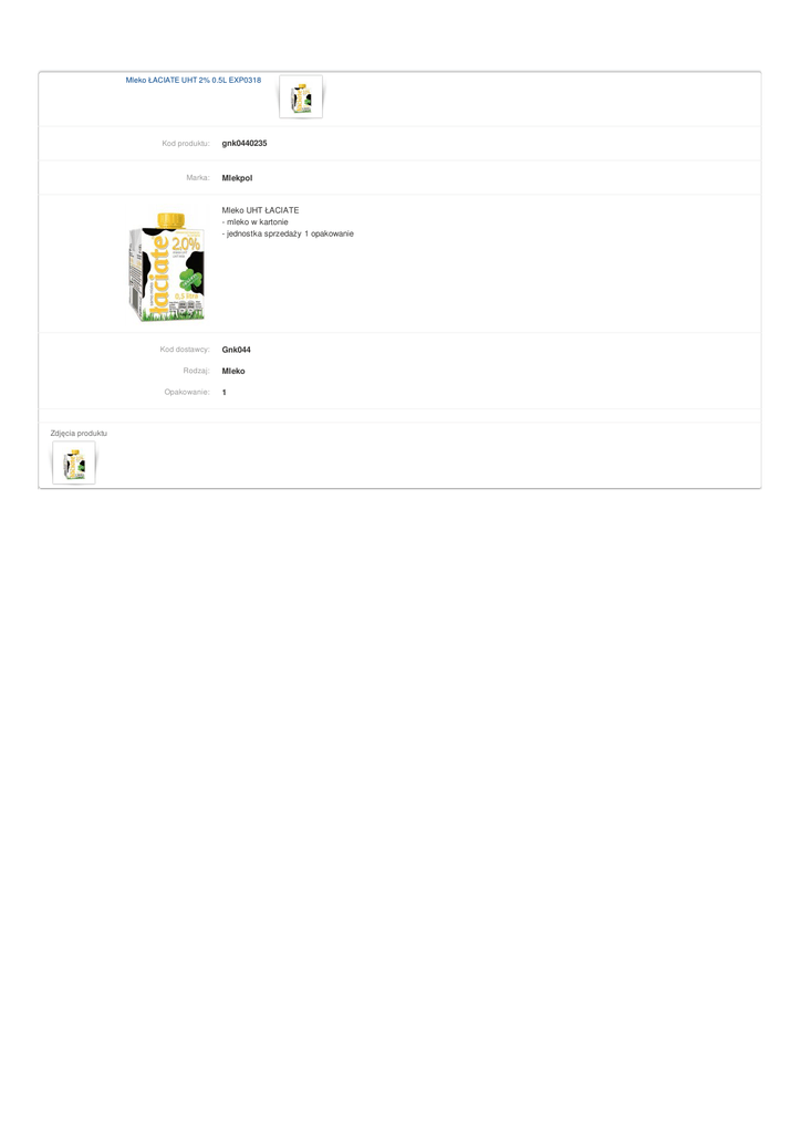 Mleko ŁACIATE UHT 2% 0.5L EXP0318 Kod produktu: Marka: gnk0440235 Mlekpol Mleko UHT ŁACIATE - mleko w kartonie - jednostka sprzedaży 1 opakowanie Kod dostawcy: Rodzaj: Opakowanie: Zdjęcia produktu Gnk044 Mleko 1