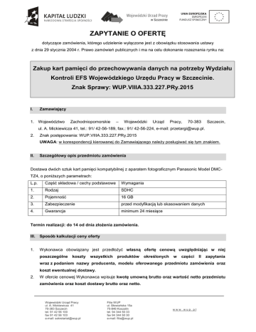 zapytanie o ofertę - Wojewódzki Urząd Pracy w Szczecinie