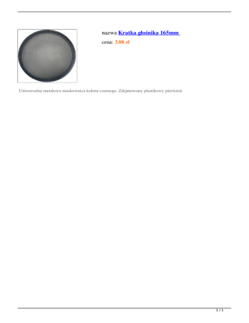 nazwa Kratka głośnika 165mm cena: 3.08 zł Uniwersalna metalowa maskownica koloru czarnego. Zdejmowany plastikowy pierścień. 1/1