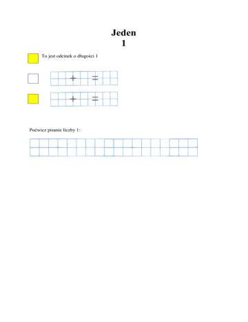 Jeden 1 To jest odcinek o długości 1 Poćwicz pisanie liczby 1: Dwa 2 To jest odcinek o długości 2 Poćwicz pisanie liczby 2: Trzy 3 To jest odcinek o długości 3 Poćwicz pisanie liczby 3: Cztery 4 To jest odcinek o długości 4 Poćwicz pisanie liczby 4: Pięć 5 To jest odcinek o długości 5 Poćwicz pisanie liczby 5: Sześć 6 To jest odcinek o długości 6 Poćwicz pisanie liczby 6: Siedem 7 To jest odcinek o długości 7 Poćwicz pisanie liczby 7: Osiem 8 To jest odcinek o długości 8 Poćwicz pisanie liczby 8: Dziewięć 9 To jest odcinek o długości 9 0+9=9 1+8=9 Poćwicz pisanie liczby 9: Dziesięć 10 To jest odcinek o długości 10 Poćwicz pisanie liczby 10: 1 x 10 2x9 3 x 8...
