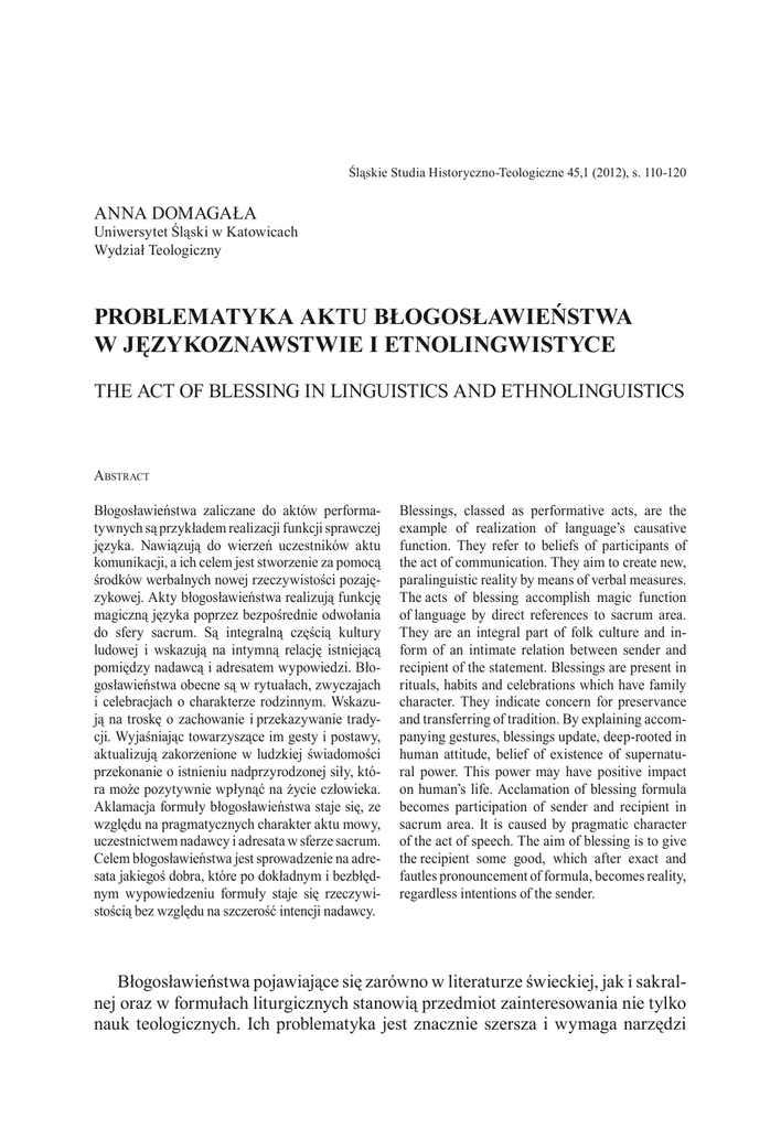 Problematyka aktu błogosławieństwa w językoznawstwie i