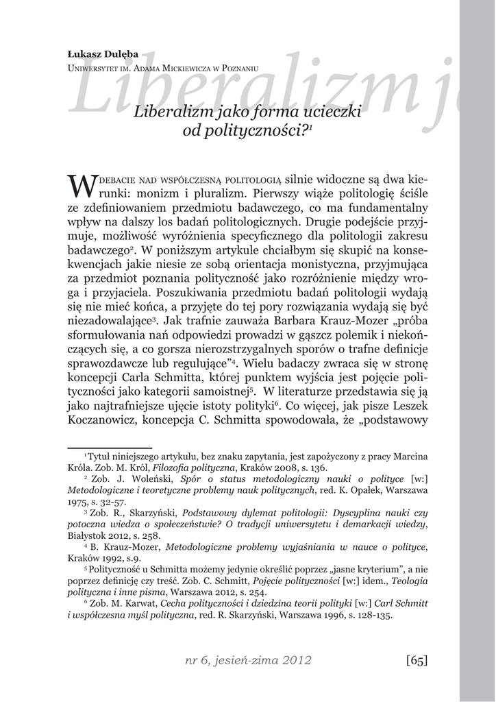 ! $! * $! PQD Nie przeciwstawiam koncepcji C. Schmitta liberalnej teorii politykiL"&)