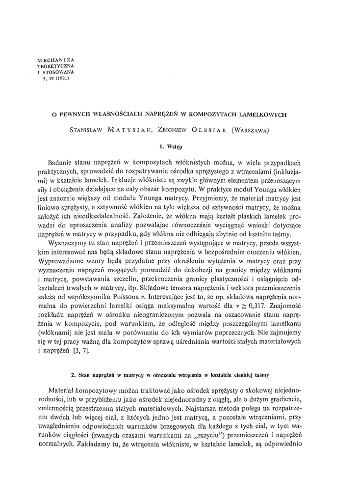 lamelek jest na tyle sztywniejszy od materiał u matrycy, że moż emy przyją ć jego nieodkształ , izotropowy i jednorodny. Lamelka jest nieskońcalnoś ć. M aterial matrycy jest sprę ż ysty
