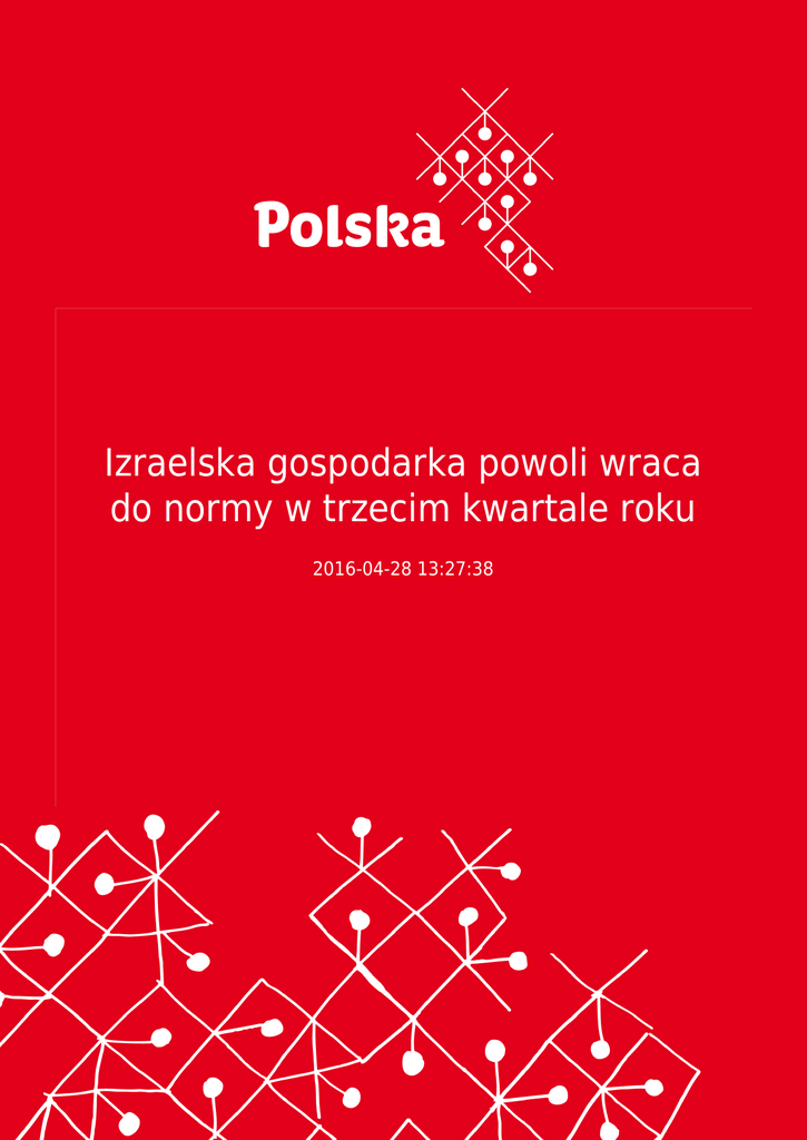 Izraelska gospodarka powoli wraca do normy w trzecim kwartale roku 2016-04-28 13:27:38 2 Pomimo słabego startu, trzeci kwartał roku 2015 przyniósł poprawę w inwestycjach i eksporcie towarów. Bank Centralny Izraela i Ministerstwo Finansów przewidują wzrost gospodarczy w 2016 roku na poziomie 3%. Izraelska gospodarka powraca powoli do swojego normalnego rytmu i pomimo słabego pierwszego półrocza, trzeci kwartał przynosi wzrost gospodarczy na poziomie 2,5% oraz pobudzenie w sektorach eksportu i inwestycji. Wzrost produktu krajowego brutto był niższy, niż się spodziewano w pierwszych sześciu miesiącach roku 2015, w czerwcu-lipcu wzrost PKB był zaledwie na poziomie 0,2%. Izraelski bank centralny jeszcze przed otrzymaniem raportu z trzeciego kwartału zapewnił, że stopy procentowe zostaną na rekordowo niskim poziomie 0.1% w celu pobudzenia gospodarki (stopy procentowe nie zostały podniesione przez 8 miesięcy, nawet pomimo słabego wzrostu PKB i deflacji). W połowie miesiąca izraelski bank centralny przedstawił raport, z którego wynika, że deflacja w listopadzie sięgnęła 0,9% i przewiduje, że w styczniu nastąpi poprawa i osiągnie poziom 0,5%. Źródło (04.12.2015): Wydział Promocji Handlu i Inwestycji Ambasady RP w Tel Awiwie na podstawie portalu Ynet www.ynet.co.il 3