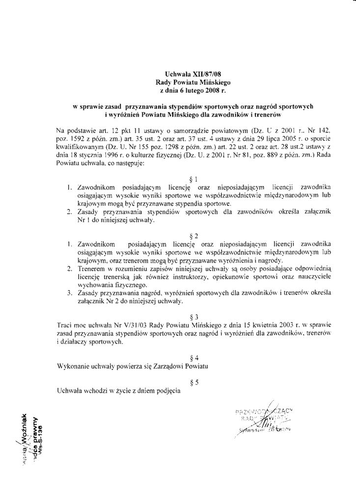 Uchwała Rady Powiatu Mińskiego XII/87/08 z dnia
