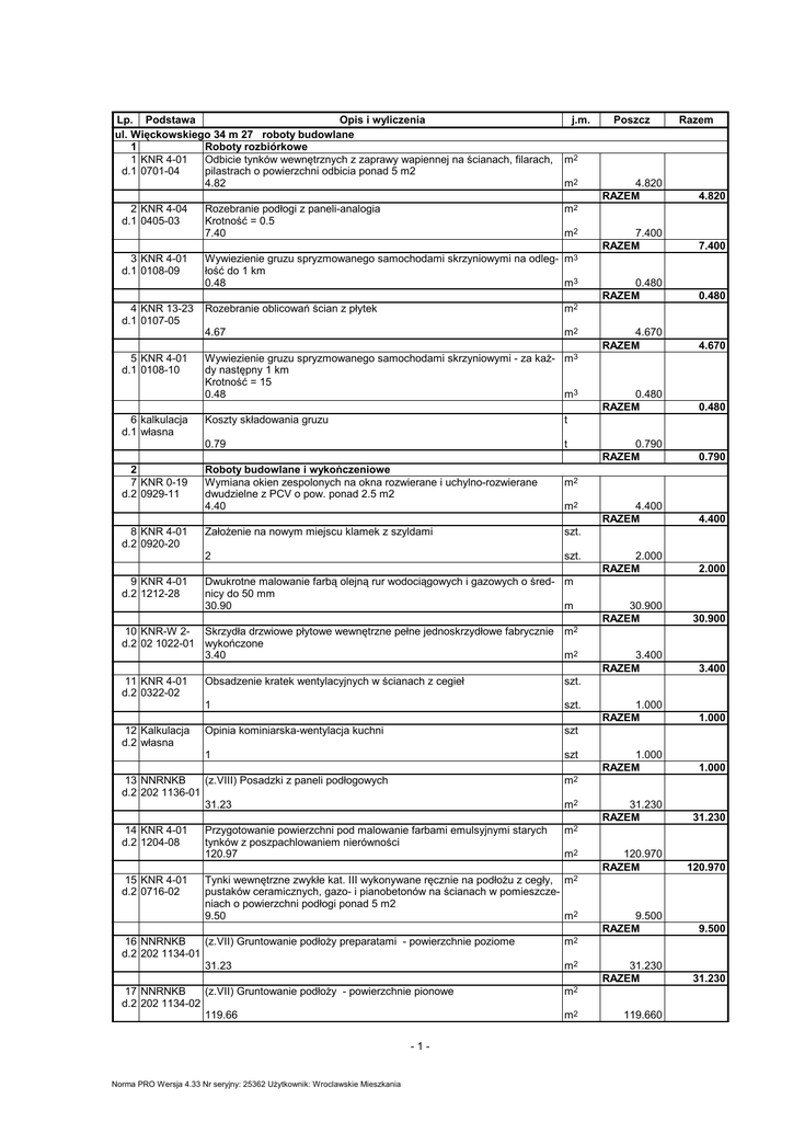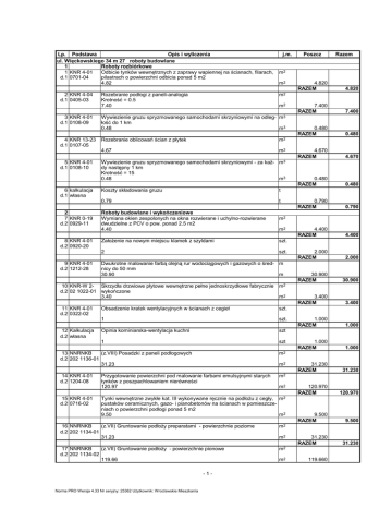 Więckowskiego 34 m 27 Przedmiar robót budowlanych