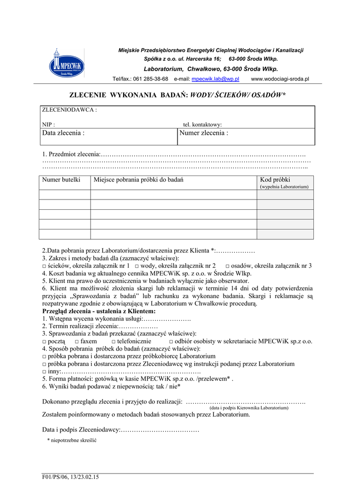 ZLECENIE WYKONANIA BADAŃ - MPECWiK