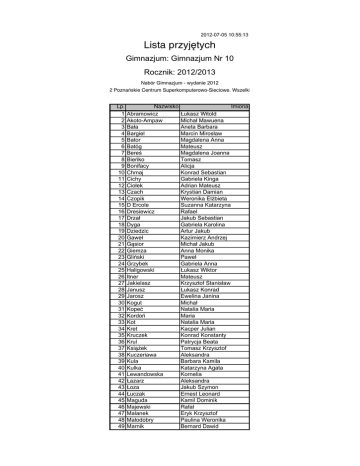 Lista przyjętych - Gimnazjum Nr 10 w Rzeszowie