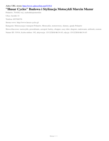 "Husar Cycles" Budowa i Stylizacja Motocykli Marcin