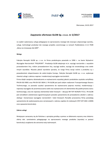 Zapytanie ofertowe GLOB Sp. z oo nr 2/2017