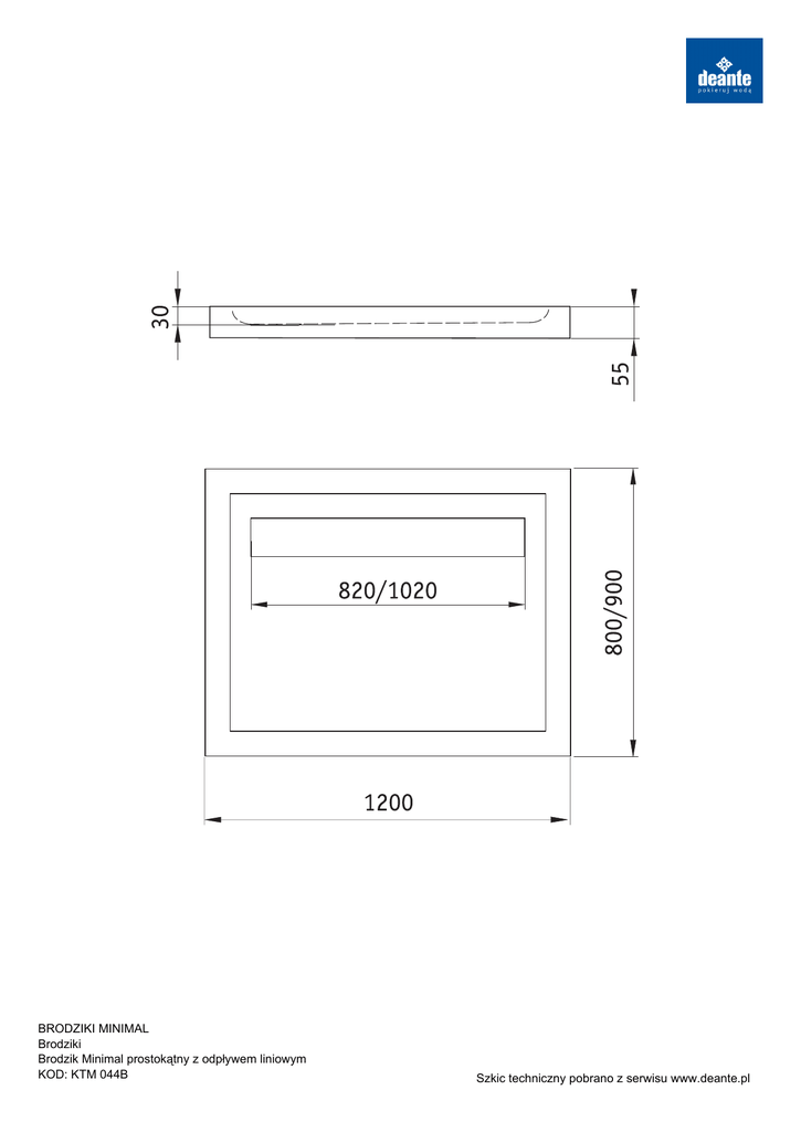 BRODZIKI MINIMAL Brodziki Brodzik Minimal prostokątny z odpływem liniowym KOD: KTM 044B Szkic techniczny pobrano z serwisu www.deante.pl