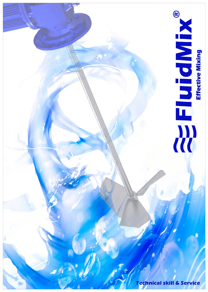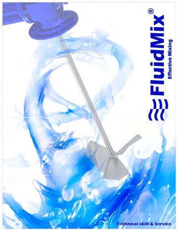 FluidMix Manufacturing and production methods are continuously developing. Fabrications are automated and electronically, or informatically controlled. Nevertheless, there are some processes, like mixing, that must be done in a mechanical way. Agitators and mixers are used for that. FluidMix designs and manufactures mixers for a great range of applications. Metody i procesy produkcyjne są stale unowocześniane. Linie produkcyjne są zautomatyzowane i sterowane elektronicznie lub informatycznie. Niemniej jednak niektóre procesy, takie jak mieszanie, muszą być wykonywane mechanicznie. Znajdują tu zastosowanie mieszadła szybko- i wolnoobrotowe. FluidMix konstruuje i produkuje mieszadła do wielu zastosowań. Our mixers are suitable for great different industry branches and sectors like: • • • • • • • • • Food and dairy industries. Wine industry and brewery. Chemical and pharmaceutical. Paper industry. Paint and ink industries. Minery. Water treatment plants. Energy, power plants. Petrochemical, fuel. Nasze mieszadła znajdują zastosowanie w wielu sektorach i różnych gałęziach przemysłu, takich jak: • • • • • • • • • The main mixing processes are: • Liquid-liquid: homogenization, emulsions • Liquid-solid: dissolutions, suspensions. • Liquid-gas: dispersions, solutions. Whatever the process is, FluidMix will design a custom made agitator for each mix of products, tank characteristics, and several influence parameters. Podstawowe procesy mieszania to: • Ciecz-ciecz: homogenizacja, emulsje • Ciecz-frakcja stała: rozpuszczanie, zawiesiny • Ciecz-gaz: dyspersja, roztwory Niezależnie od procesu, FluidMix zaprojektuje mieszadło, dobrane indywidualnie w zależności od produktów, charakterystyki zbiornika oraz innych parametrów. Przemysł spożywczy i przetwórstwo mleka Winiarstwo i browarnictwo Chemia i farmaceutyka Przemysł papierniczy Produkcja farb i lakierów Kopalnie Uzdatnianie wody i oczyszczanie ścieków Elektrownie Petrochemie i rafinerie Effective Mixing A wide range of models allows to offer a solution to great number of applications. VHS3 and VHD3 SERIES For small tanks. 0,18 kW to 1,5 kW. Fast speed. Marine propeller. Shafts up to 1500 mm. AISI 316 or special coatings. • • • • • • SERIA VHS3 i VHD3 Przeznaczone do małych zbiorników 0,18 kW do 1,5 kW Szybkoobrotowe Wirnik śrubowy Długość wału do 1500 mm AISI 316 lub specjalne powłoki • • • • • • SERIA VPP3 i VPH3 VPP3 and VPH3 SERIES. • • • • • For medium tanks. 0,18 kW to 2,2 kW. Speed 50 a 300 rpm. Axial profile propeller. Shafts up to 1500 mm. • AISI 316, or plastic coated. For tanks from 3000 L. From 0,35 kW. Speeds 30 to150 rpm. 4 blades axial turbine. AISI 316, AISI 304, ebonite coated, special materials. • • • • • Przeznaczone do zbiorników średniej wielkości 0,18 kW do 2,2 kW Obroty od 50 do 300 rpm Śmigło o profilu osiowym Długość wału do 1500 mm AISI 316 lub powłoka z tworzywa sztucznego SERIA VTS4 i VTG VTS4 and VTG SERIES. • • • • • • • • • • • Do zbiorników powyżej 3000 l Od 0,37 kW Obroty od 30 do 150 rpm Turbina osiowa, 4-łopatkowa AISI 316, AISI 304, powłoka ebonitowa, wykonania specjalne SERIA VPT i VPS VPT and VPS SERIES. • • • • • Slow speed mixers. From 0,55 kW. Speed 3 to 300 rpm. Axial profile propeller. AISI 316, AISI 304, ebonite coated, special materials. • • • • • Mieszadła wolnoobrotowe Od 0,55 kW Obroty od 3 do 300 rpm Śmigło o profilu osiowym AISI 316, AISI 304, powłoka ebonitowa, wykonania specjalne FluidMix Szeroki wybór modeli pozwala na dobór urządzeń do pracy w różnych warunkach SERIES VFT • • • • • • • SERIA VFT For big tanks. Motor power: 0,25 kW to 3 kW. Running speed 5 to 40 rpm. 2/3 blades axial turbines. Diameters 400 to 4000 mm. Shaft length up to 12000 mm. Shaft and propeller AISI 316, AISI 304, carbon steel, rubber coated, special alloys. • • • • • • • Przeznaczone do dużych zbiorników 0,25 kW do 3 kW Obroty od 5 do 40 rpm Turbina osiowa, 2/3 -łopatkowa Średnica od 400 do 4 000 mm Długość wału do 12 000 mm Wał i turbina AISI 316, AISI 304, stal węglowa, powłoka gumowa, stopy specjalne VFR and VFV SERIES. Very slow speed mixers. Speed 3 to 50 rpm. Adjustable speed. Axial profile propeller. AISI 316, AISI 304, ebonite coated, special materials. • • • • • HPS3 SERIE. • • • • • • Horizontal mixers. 0,37 kW to 11 kW. Speed 300 rpm. Axial profile propeller. Mechanical seal. AISI 316 or AISI 304. SERIA VFR i VFV Mieszadła wolnoobrotowe Obroty od 3 do 50 rpm Regulowana prędkość obrotowa Śmigło o profilu osiowym AISI 316, AISI 304, powłoka ebonitowa, wykonania specjalne • • • • • SERIA HPS3 • • • • • • Mieszadła o osi poziomej 0,37 do 11 kW Obroty 300 rpm Śmigło o profilu osiowym Uszczelnienie mechaniczne AISI 316 lub AISI 304 VTA SERIE. • • • • • • For IBC tanks. Power 0,37 to 2,2 kW. Foldable turbine blades Tank supporting frame. Up to 2 m3 volume. For viscous fluids. SERIA VTA • • • • • Przeznaczone do zbiorników IBC o objętości do 2 m3 0,37 do 2,2 kW Składane łopatki turbiny Podstawa do montażu na zbiorniku Do cieczy o zwiększonej lepkości Effective Mixing Certificación ATEX. Certyfikat ATEX MIESZADŁA SPECJALNE • • • • • • Dowolna moc silnika Do zbiorników ciśnieniowych Do pracy w wysokiej temperaturze Chłodzone uszczelnienie mechaniczne Projekty indywidualne Dodatkowe uszczelnienie pozwalające na demontaż napędu bez opróżniania zbiornika SPECIAL AGITATORS. • • • • • • MIESZADŁA Z PODNOŚNIKIEM • • • • • Podnośnik ręczny Podnośnik elektryczny Podnośnik hydrauliczny Konstrukcja dostosowana do potrzeb Projekty indywidualne AGITATORS WITH LIFTING DEVICE. • • • • • Manual lifting device. Electric lifting device. Hydraulic lifting device. De
