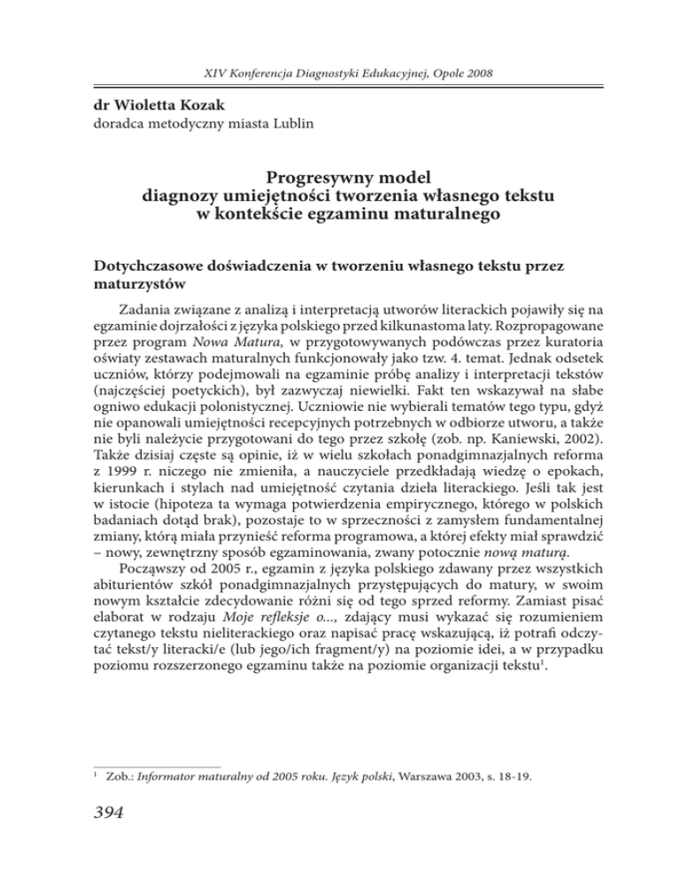 394 Progresywny model diagnozy umiejętności tworzenia własnego