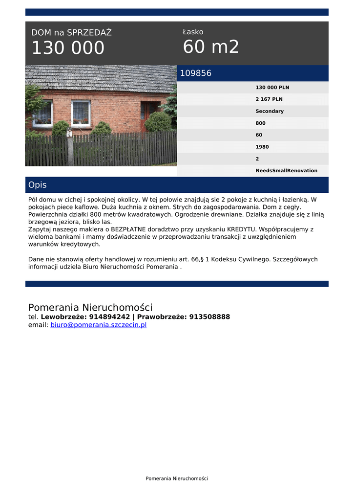 130 000 60 m2 - Pomerania Nieruchomości