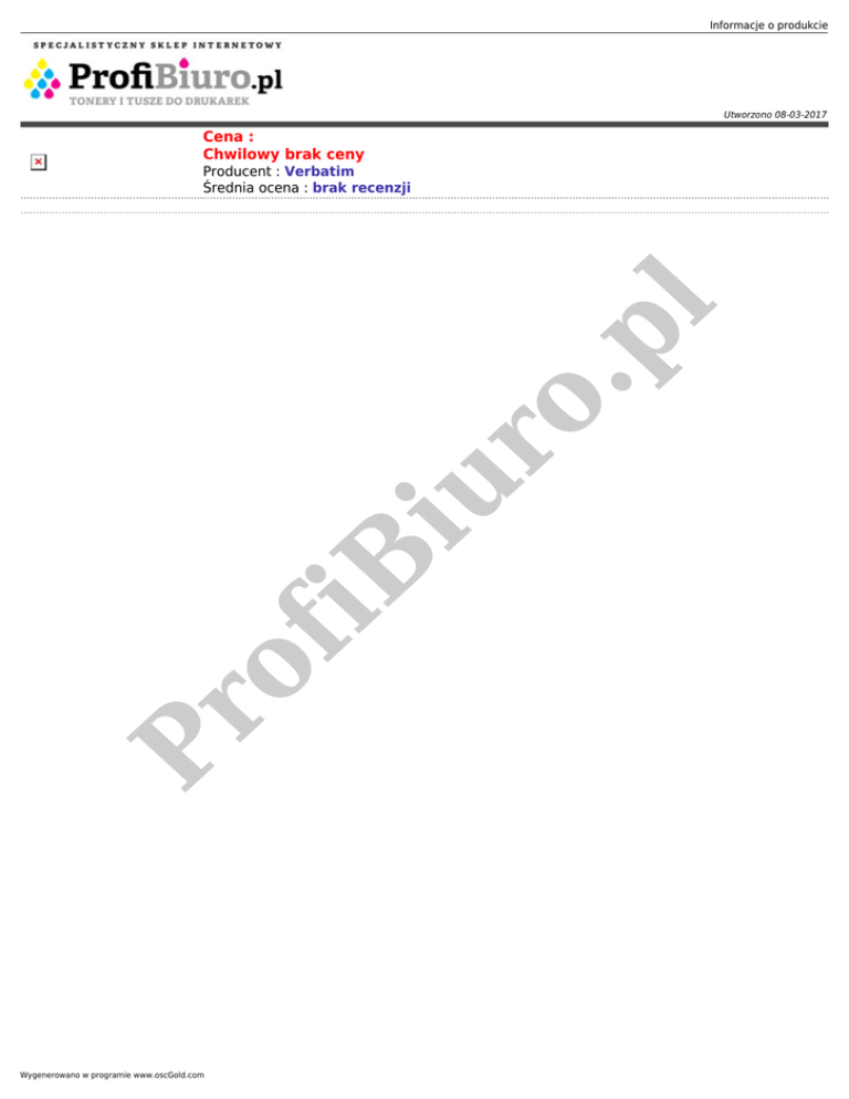 Informacje o produkcie Utworzono 08-03-2017 Cena : Chwilowy brak ceny Pr of iB iu r o. pl Producent : Verbatim Średnia ocena : brak recenzji Wygenerowano w programie www.oscGold.com