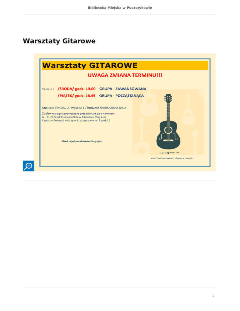 Biblioteka Miejska w Puszczykowie Warsztaty Gitarowe 1