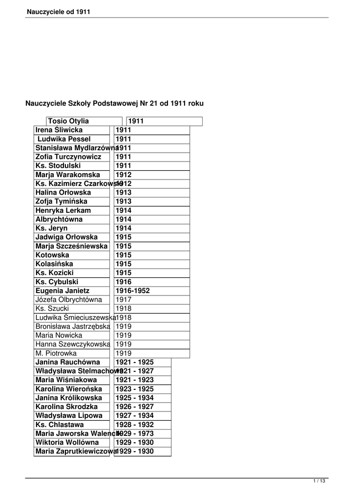 Nauczyciele od 1911