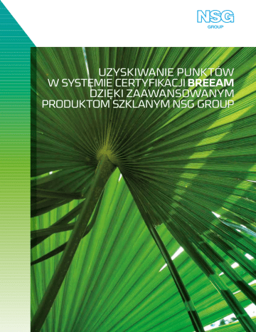 Uzyskiwanie punktów w systemie certyfikacji BREEAM dzięki zaawansowanym produktom szklanym NSG GROUP BREEAM to najczęściej stosowana na świecie metoda wielokryterialnej oceny wpływu budownictwa na środowisko. W niniejszej publikacji opisujemy jak produkty NSG Group mogą pomóc w uzyskaniu punktów w certyfikacji BREEAM w poszczególnych kategoriach. Kategoria Energia Redukcja emisji CO2 znakomitym rozwiązaniem dla dużych przeszklonych powierzchni w wymagających projektach. Cel: Zidentyfikować projektowane obiekty i spowodować, aby budynki minimalizowały emisję CO2 wynikającą ze zużycia energii niezbędnej do ich funkcjonowania. Wybór kombinacji szyb będzie zależał od wymaganych parametrów technicznych, jak również od lokalizacji budynku, jego orientacji względem stron świata i powierzchni przeszkleń. Cel ten można osiągnąć stosując energooszczędne szkło niskoemisyjne i szkło przeciwsłoneczne, które dla uzyskania najlepszej efektywności stosuje się w postaci jedno lub dwukomorowych szyb zespolonych. W krajach o chłodnym klimacie szkło niskoemisyjne zapobiega ucieczce ciepła z pomieszczeń, pozwalając jednocześnie na przenikanie energii słonecznej do wnętrza budynku. Szyby o najniższym współczynniku przenikania ciepła Ug (wyrażonym w W/m2K, który określa stopień strat ciepła w watach na metr kwadratowy szkła przy różnicy temperatur pomiędzy wnętrzem a otoczeniem wynoszącej 1 stopień Kelvina) zapewnią najlepszą izolacyjność cieplną. Oprócz tego w chłodnym, ale słonecznym klimacie szkło charakteryzujące się wysokim współczynnikiem g, określanym też jako bierny zysk ciepła słonecznego (g – całkowita przepuszczalność energii słonecznej) pomoże jeszcze bardziej zredukować potrzebę ogrzewania wnętrza budynku. Dysponujemy szeroką gamą szyb niskoemisyjnych odpowiadającą zróżnicowanym wymaganiom. Pilkington Energy Advantage™ i Pilkington K Glass™ są szybami niskoemisyjnymi, które charakteryzują się średnimi parametrami izolacyjności cieplnej. Można je stosować w przeszkleniach pojedynczych, ale najlepsze parametry izolacyjności cieplnej osiągają w szybach zespolonych. W przypadku zastosowania w jednokomorowych szybach zespolonych o standardowej konstrukcji osiągają współczynnik przenikania ciepła Ug na poziomie 1,5 W/m2K. Jednocześnie zapewniają najwyższy poziom biernych zysków słonecznych (aż do 72% dla szyby Pilkington K Glass™), czyli darmowej energii ze słońca. Pilkington Optitherm™ to gama szyb niskoemisyjnych, które charakteryzują się najwyższym poziomem izolacyjności cieplnej. Produkty te zapewniają niski współczynnik przenikania ciepła Ug aż do 1,0 W/m2K (Pilkington Optitherm™ S1 użyte w jednokomorowej szybie zespolonej o standardowej konstrukcji), a nawet 0,6 W/m2K (Pilkington Optitherm™ GS użyte w dwukomorowej szybie zespolonej o standardowej konstrukcji). Szkło Pilkington Optitherm™ GS zostało specjalnie opracowane, aby przewyższyć wymagania specyfikacji dla budynków pasywnych, oferując jednocześnie wysoką wartość współczynnika g i wysoką przepuszczalność światła (odpowiednio 61% i 73%). Możliwe jest osiągnięcie jeszcze niższego współczynnika przenikania ciepła Ug = 0,4 W/m2K w dwukomorowej szybie zespolonej ze szkłem Pilkington Optitherm™ S1. Jednak w tym przypadku będzie to kompromis pomiędzy współczynnikiem g, a przepuszczalnością światła (odpowiednio 36% i 56%). Najbardziej popularnym szkłem niskoemisyjnym jest Pilkington Optitherm™ S3. W jednokomorowej szybie zespolonej o standardowej konstrukcji osiąga ono współczynnik Ug = 1,1 W/m2K, oferując jednocześnie wysoką przepuszczalność światła, niską refleksyjność i wysoki poziom neutralności. Takie parametry sprawiają, że produkt ten jest 2 Zachowanie równowagi pomiędzy ochroną konserwatorską obiektów historycznych a nowoczesnym komfortem i wymaganiami środowiskowymi może być sporym wyzwaniem. Podwyższenie standardu historycznych budynków konstruowanych w czasach, kiedy efektywność energetyczna nie była tak istotna, może czasem wymagać rozwiązań kompromisowych między integralnością budynków a ich efektywnością energetyczną. Pilkington Spacia™ jest pierwszym na świecie komercyjnie dostępnym szkłem opartym na technice próżniowej. Oferuje ono izolacyjność cieplną podobną do tradycyjnych jednokomorowych szyb zespolonych. Przy grubości szyby próżniowej zbliżonej do grubości pojedynczego szkła (6 mm), uzyskuje współczynnik Ug = 1,4 W/m2K. Rozwiązanie to pozwala na wymianę okien na takie, które będą bliższe oryginalnemu projektowi. Jeśli ramy istniejących okien są w dobrym stanie, pozwalającym na ich odświeżenie, to można wymienić w nich same szyby. W krajach o gorącym klimacie szkło przeciwsłoneczne minimalizuje ilość energii słonecznej przenikającej do budynku, jednocześnie przepuszczając do wnętrza dużo naturalnego światła dziennego. Najlepsze energooszczędne przeszklenia łączą ochronę przed słońcem i izolacyjność cieplną, aby poprawić parametry techniczne redukując: zyski ciepła wynikające z bezpośredniego promieniowania słonecznego dostającego się do budynku, dzięki obniżonej wartości współczynnika g oraz zyski ciepła wynikające z przewodzenia przez szybę zespoloną ciepła z gorącego otoczenia zewnętrznego do klimatyzowanych pomieszczeń. Kombinacja właściwości przeciwsłonecznych i niskiej emisyjności pomoże zredukować obciążenia klimatyzacyjne, oszczędzić energię i zredukować emisję CO2. Wystarczy zastosować w szybie zespolonej jeden produkt, który zapewni zarówno ochronę przed słońcem jak i izolacyjność cieplną lub użyć dwa rodzaje szkła – jedno przeciwsłoneczne a drugie niskoemisyjne. Pilkington Suncool™ to gama wysokoefektywnych szyb przeciwsłonecznych, charakteryzujących się szerokim zakresem przepuszczalno