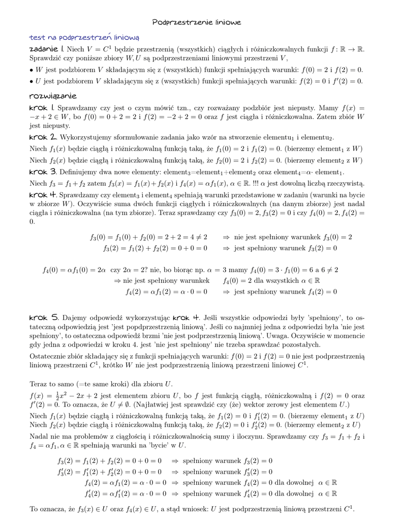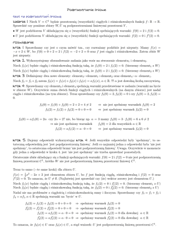 Ostatecznie zbiór składający się z funkcji spełniających warunki: f (0) = 2 i f (2) = 0 nie jest podprzestrzenią
