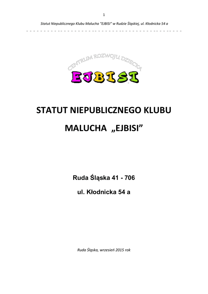 STATUT NIEPUBLICZNEGO KLUBU MALUCHA „EJBISI”