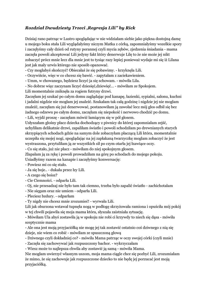 Rozdział Dwudziesty Trzeci ,Regresja Lili” by Rick