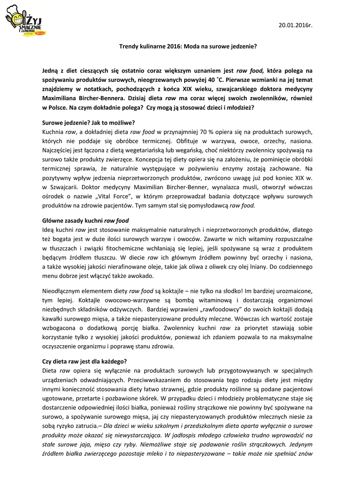 20.01.2016r. Trendy kulinarne 2016: Moda na surowe