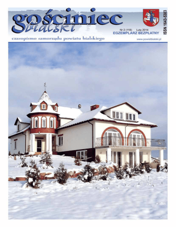 CZASOPISMO SAMORZĄDU POWIATU BIALSKIEGO LUTY 2014 – GOŚCINIEC BIALSKI 1 2 GOŚCINIEC BIALSKI – LUTY 2014 CZASOPISMO SAMORZĄDU POWIATU BIALSKIEGO Galeria Czarowny świat pasteli Uczniowie bialskiego LO im. E. Plater znają jako nauczycielkę wiedzy o kulturze oraz podstaw przedsiębiorczości. Natomiast bywalcy galerii sztuki jako utalentowaną malarkę tworzącą pastelami i farbami akrylowymi. Ewa Borowska-Kurpeta, bo o niej mowa, jest absolwentką Wydziału Artystycznego UMCS ze specjalnością grafika. Dyplom uzyskała w 1981 r. Od tej chwili nie ustaje w twórczych działaniach. Jej prace eksponowane były na 40 wystawach zbiorowych (m.in. na Białorusi, Ukrainie, w Danii i Grecji) oraz 22 wystawach indywidualnych. Prezentuje na nich dojrzały dorobek. Doceniono go licznymi nagrodami, w tym Bialską Nagrodą Kultury im. Anny z Sanguszków Radziwiłłowej, przyznaną w 2006 r., za znaczące dokonania w zakresie twórczości artystycznej, upowszechniania i mecenatu kultury. Od 2011 r. Ewa jest stałym uczestnikiem Międzynarodowych Sympozjów Malarskich, organizowanych w Grecji pod patronatem UNESCO. Bywa tam jako jedna z nielicznych artystek polskich i jedyna reprezen- tantka województwa lubelskiego. Do tej pory miała okazję odwiedzenia Patras, Olimpii, Koryntu i Salonik, a latem br. wybiera się do Aten. Każdy taki wyjazd to okazja do poznania nowych, rzadko w Polsce prezentowanych kultur i spełnienia się twórczego. W greckich sympozjach uczestniczy zwykle ponad 200 artystów z 45 krajów świata. Ulubioną techniką Ewy są pastele. – Maluję pastelami intuicyjnie, dotykowo. Nie używam żadnych narzędzi, po prostu rozcieram kredkę palcami. Bardzo lubię miękkie pastele, szczególnie francuskie. Zostawiają delikatną mgiełkę i pozwalają się swobodnie rozprowadzać. Jako podobrazie stosuję szorstkie kartony, tektury, czasami o włochatej powierzchni – zwierza się artystka. IGR CZASOPISMO SAMORZĄDU POWIATU BIALSKIEGO LUTY 2014 – GOŚCINIEC BIALSKI W numerze m.in. Szanowni Państwo Międzynarodowy Festiwal Kolęd Wschodniosłowiańskich organizowany cyklicznie w Terespolu stanowi znaczące wydarzenie, które ma piękną tradycję. Co roku zjeżdżają do Terespola wykonawcy z kilku krajów, aby ocieplać serca wyjątkowymi śpiewami. W lutym nasz powiat miał zaszczyt być gospodarzem Konwentu Powiatów Województwa Lubelskiego, który odbył się w janowskiej Stadninie Koni. Starostowie pracowali nad wspólnymi planami realizacji projektów na lata 2014 – 20. Sympatycznym okazało się doroczne spotkanie władz Starostwa z autorami i drukarzami dokładającymi starań, aby co miesiąc Czytelnicy mogli otrzymać nowy numer Gościńca Bialskiego. Każde tego typu spotkanie owocuje ciekawymi pomysłami na najbliższe miesiące. Równie ciekawa była konferencja pszczelarska z udziałem interesujących prelegentów. Niespodziewane odnalezienie dzika zarażonego afrykańskim pomorem świń obok Sokółki spowodowało niemałe zawirowanie również w naszym powiecie. W związku z ogłoszeniem strefy buforowej hodowcy trzody nie mogli sprzedawać tuczników do rzeźni i zakładów mięsnych. Na szczęście wojewoda lubelski odwołał w końcówce miesiąca wcześniejsze postanowienia. W gminach i miasteczkach powiatu miało miejsce wiele ciekawych imprez i uroczystości, o których możecie Państwo przeczytać w niniejszym numerze. Zachęcam zatem do lektury. Z poważaniem Tadeusz Łazowski Starosta Bialski Czarowny świat pasteli Ewy Borowskiej-Kurpety 2 Obradował Zarząd Powiatu 4 Rozmawiali o funduszach unijnych 5 Problemy nowoczesnego pszczelarstwa 6 Współpraca z powiatem Oberhavel 7 Spotkanie „Gościńca” 8 Współpraca transgraniczna 9 Harfa Eola dla bialskiego chóru 10 Zagrożenie pomorem świń 10 Porozumienie Starostwa z uczelnią 11 Historia wczoraj i dziś 12 Miasto nagrodziło najaktywniejszych 13 O inwestycjach 14 W Zaborku 15 Konkurs młodych wokalistów 16 Międzynarodowy Festiwal Kolęd 17 Stawiamy na szczerość 18 Rozmawia z Tomaszem Szczepanikiem, liderem grupy Pectus 18 Wierzbaki nagrały płytę 19 Wyjmuję z szafy skrzydła… Ikara 20 Walentynkowe uroczystości 20 Gościniec historyczny 21-24 Głosili piękno miłości 25 Niepokorni, niezłomni, wyklęci 26 Bal przebierańców 27 Królewna tańcowała ze smokiem 28 Rodzinne świętowanie 29 Rozśpiewane Kaczeńce 30 Kolędowali w Małaszewiczach 31 Kraciówka zaprasza 32 Gościniec sportowy 33-38 Na okładce: Pensjonat „Zameczek” w Konstantynowie. Foto. Wojciech Kępiński 3 4 CZASOPISMO SAMORZĄDU POWIATU BIALSKIEGO GOŚCINIEC BIALSKI – LUTY 2014 Z obrad samorządu K A LEN DA R I U M 1-2 lutego W Terespolu odbyła się dziewiętnasta edycja Międzynarodowego Festiwalu Kolęd Wschodniosłowiańskich, organizowanego przez prawosławną diecezję lubelsko-chełmską, Fundacje Dialog Narodów, Nadbużańskie Centrum Kultury Prawosławnej oraz Miejski Ośrodek Kultury w Terespolu. Podczas tegorocznej edycji zaprezentowały się: 33 chóry, zespoły, grupy śpiewaczy, z Polski i zagranicy (Białoruś, Ukraina). Koncertom towarzyszyły wystawy fotograficzne z obiektami prawosławia. 1 lutego W Sławacinku Starym nastąpiło uroczyste przekazanie samochodu bojowego, pozostającego dotąd w zasobach KM PSP. W uroczystości uczestniczyły delegacje zagraniczne z Białorusi i Ukrainy. 3 lutego W Białej Podlaskiej odsłonięto tablicę pamiątkową ks. Zbigniewa Bieńkowskiego, zmarłego proboszcza parafii pw. św. Anny. 4 lutego W Starost wie Powiatow ym odbyło się doroczne spotkanie redakcji Gościńca Bialskiego. Starosta Tadeusz Łazowski wręczył współpracownikom okolicznościowe dyplomy i przekazał upominki. 5 lutego W komendzie Miejskiej PSP nastąpiło rozstrzygniecie konkursu plastycznego „Młodzież zapobiega pożarom”. Laureaci otrzymali dyplomy i upominki. 7 lutego W Zespole Szkół Ekonomicznych w Międzyrzecu Podlaskim obchodzono Dzień Patrona Szkoły. Mia