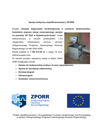 Sprzęt medyczny współfinansowany z ZPORR Projekt „Rozwój