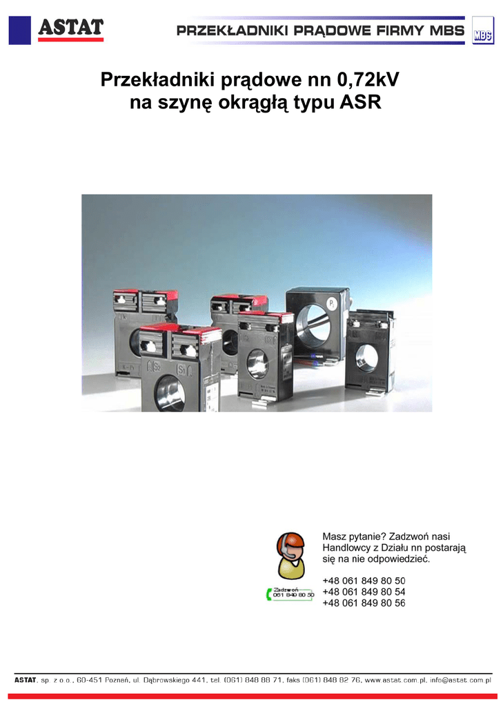 Przekładniki prądowe nn 0,72kV na szynę okrągłą typu ASR ASR 14.3 Przekładniki prądowe na szynę okrągłą Prąd w tórny Prąd pierw otny A 30 40 50 60 75 Ø 14,0 mm Średnica otw oru 45 mm Szerokość przekładnika Adapter zatrzaskow y Nr kat. 55013 na szynę DIN Osłona do plombow ania — VA 1 1 1,5 1,5 1,5 5A 1A Klasa dokładności 1 0,5 Nr kat. Nr kat. 26080 26081 26082 26083 26084 Klasa dokładności 1 0,5 Nr kat. Nr kat. 26280 26281 26282 26283 26284 Adapter zatrzaskowy na szynę DIN ASR 20.3 Przekładniki prądowe na szynę okrągłą Prąd w tórny Prąd pierw otny A 50 60 75 80 100 125 150 200 250 300 VA 1 1 1,25 1,25 1,5 1,25 1,5 1,5 2,5 1,5 2,5 3,75 1,5 2,5 3,75 1,5 2,5 5 2,5 5 7,5 2,5 5 7,5 5A 1A Klasa dokładności 1 0,5 Nr kat. Nr kat. 26027 26028 26029 26030 26031 26032 26033 26034 26011 26035 26012 26036 26013 26037 26014 26038 26039 26015 26040 26016 26041 26042 26017 26043 26018 26044 26019 26045 26020 26046 26021 26047 26048 26022 26049 26023 26050 Klasa dokładności 1 0,5 Nr kat. Nr kat. 26227 26228 26229 26230 26231 26232 26233 26234 26211 26235 26212 26236 26213 26237 26214 26238 26239 26215 26240 26216 26241 26242 26217 26243 26218 26244 26219 26245 26220 26246 26221 26247 26248 26222 26249 26223 26250 Adapter zatrzaskowy na szynę DIN Średnica otw oru Szerokość przekładnika Adapter na szynę DIN Osłona do plombow ania Ø 21,0 mm 45 mm Nr k at. 55013 - ASR 201.3 Przekładniki prądowe na szynę okrągłą Prąd w tórny Prąd pierw otny A 50 60 75 80 100 125 150 200 250 300 VA 1 1 1,25 1,25 1,5 1,25 1,5 1,5 2,5 1,5 2,5 3,75 1,5 2,5 3,75 1,5 2,5 5 2,5 5 7,5 2,5 5 7,5 5A 1A Klasa dokładności 1 0,5 Nr kat. Nr kat. 27027 27028 27029 27030 27031 27032 27033 27034 27011 27035 27012 27036 27013 27037 27014 27038 27039 27015 27040 27016 27041 27042 27017 27043 27018 27044 27019 27045 27020 27046 27021 27047 27048 27022 27049 27023 27050 Klasa dokładności 1 0,5 Nr kat. Nr kat. 27227 27228 27229 27230 27231 27232 27233 27234 27211 27235 27212 27236 27213 27237 27214 27238 27239 27215 27240 27216 27241 27242 27217 27243 27218 27244 27219 27245 27220 27246 27221 27247 27248 27222 27249 27223 27250 Adapter zatrzaskowy na szynę DIN Średnica otworu Ø 21,0 mm Szerokość przekładnika 44 mm A dapter na szynę DIN Osłona do plombowania Nr kat. 55013 _ ASR 21.3 Przekładniki prądowe na szynę okrągłą Prąd w tórny 5A 1A Prąd pierw otny A VA 100 1 150 1,5 200 1,5 2,5 250 1,5 2,5 5 300 1,5 2,5 5 400 2,5 5 10 500 2,5 5 10 600 2,5 5 10 Klasa dokładności 1 Nr kat. 1023 1024 1026 1027 1028 1029 1030 1031 1032 1033 1034 1035 1036 1037 1038 1039 1040 1041 1042 Klasa dokładności 1 Nr kat. 1223 1224 1226 1227 1228 1229 1230 1231 1232 1233 1234 1235 1236 1237 1238 1239 1240 1241 1242 Adapter zatrzaskowy na szynę DIN Średnica otw oru Szerokość otw oru Adapter na szynę DIN Osłona do plombow ania Ø 22,5 mm 49,5 mm Nr kat. 55014 — ASR 21.5 Przekładniki prądowe na szynę okrągłą 5A Prąd w tórny Prąd pierw otny A 50 60 75 80 100 125 150 200 250 50 300 400 500 600 Średnica otw oru Szerokość otw oru Adapter na szynę DIN Osłona do plombow ania Ø 21,0 mm 50 mm — — VA 1,5 2,5 1,5 2,5 3,75 1,5 2,5 3,75 1,5 2,5 5 1,5 2,5 5 1,5 2,5 5 2,5 5 10 2,5 5 10 15 2,5 5 10 15 2,5 5 10 15 2,5 5 10 15 2,5 5 10 15 2,5 5 10 15 1A Klasa dokładności Klasa dokładności 1 Nr.kat 93050 93051 93052 93053 93054 93055 93056 93057 93058 93059 93060 93061 93062 93063 93064 93065 93066 93067 93068 93069 93070 93071 93072 93073 93074 93075 93076 93077 93078 93079 93080 93081 93082 93083 93084 93085 93086 93087 93088 93089 93090 93091 93092 93093 1 Nr.kat 93250 93251 93252 93253 93254 93255 93256 93257 93258 93259 93260 93261 93262 93263 93264 93265 93266 93267 93268 93269 93270 93271 93272 93273 93274 93275 93276 93277 93278 93279 93280 93281 93282 93283 93284 93285 93286 93287 93288 93289 93290 93291 93292 93293 0,5 Nr.kat 93011 93012 93013 93014 93015 93016 93017 93018 93019 93020 93021 93022 93023 93024 93025 93026 93027 93028 93029 93030 93031 93032 93033 93034 93035 93036 93037 93038 93039 93040 93041 93042 0,5 Nr.kat 93211 93212 93213 93214 93215 93216 93217 93218 93219 93220 93221 93222 93223 93224 93225 93226 93227 93228 93229 93230 93231 93232 93233 93234 93235 93236 93237 93238 93239 93240 93241 93242 ASR 22.3 Przekładniki prądowe na szynę okrągłą Prąd w tórny Prąd pierw otny A VA 40 1 50 1 1,5 60 1 1,5 75 1,5 2,5 80 1,5 2,5 100 1,5 2,5 5 150 1,5 2,5 5 200 1,5 2,5 5 10 250 1,5 2,5 5 10 15 300 2,5 5 10 15 400 2,5 5 10 15 500 2,5 5 10 15 600 2,5 5 10 15 Średnica otw oru Szerokość przekładnika Adapter na szynę DIN Ø 22,5 mm 61 mm Nr.kat 53011 Osłona do plombow ania Nr.kat 59040 5A Klasa dokładności 1 0,5 0,2s Nr kat. Nr kat. Nr kat. 3034 3035 3036 3037 3038 3039 3040 3041 3042 3043 3011 V04-1304C 3044 3134 3045 3046 3012 V04-1604C 3047 3013 V04-1604D 3048 3138 3014 3049 3015 V04-1704D 3050 3016 V04-1704F 3051 3017 3052 3018 V04-1804D 3053 3019 V04-1804F 3054 3020 3055 3056 3022 V04-1904D 3057 3023 V04-1904F 3058 3024 3059 3060 3025 V04-2004D 3061 3026 V04-2004F 3062 3027 3063 3064 3028 V04-2104D 3065 3029 V04-2104F 3066 3030 V04-2104H 3067 3068 3031 V04-2204D 3069 3032 V04-2204F 3070 3033 V04-2204H 3071 1A Klasa dokładności 1 0,5 Nr kat. Nr kat. 3234 3235 3236 3237 3238 3239 3240 3241 3242 3243 3211 3244 3334 3245 3246 3212 3247 3213 3248 3338 3214 3249 3215 3250 3216 3251 3217 3252 3218 3253 3219 3254 3220 3255 3256 3222 3257 3223 3258 3224 3259 3260 3225 3261 3226 3262 3227 3263 3264 3228 3265 3229 3266 3230 3267 3268 3231 3269 3232 3270 3233 3271 ASR 42.45 Przekładniki prądowe na szynę okrągłą Prąd w tórny Prąd pierw otny A 150 200 250 300 400 500 600 750 800 1000 VA 1,5 2,5 1,5 2,5 5 1,5 2,5 5 7,5 2,5 5 10 2,5 5 10 2,5 5 10 15 2,5 5 10 15 2,5 5 10 15 5 10 15 30 5 10 15 30 5A 1A Klasa dokładności 1 Nr.kat 26500 26501 26502 26503 26504 26505 26506 26507 26508 26509 26510 26511 26512 26513 26514 26515 26516 26517 26518 26519 26520