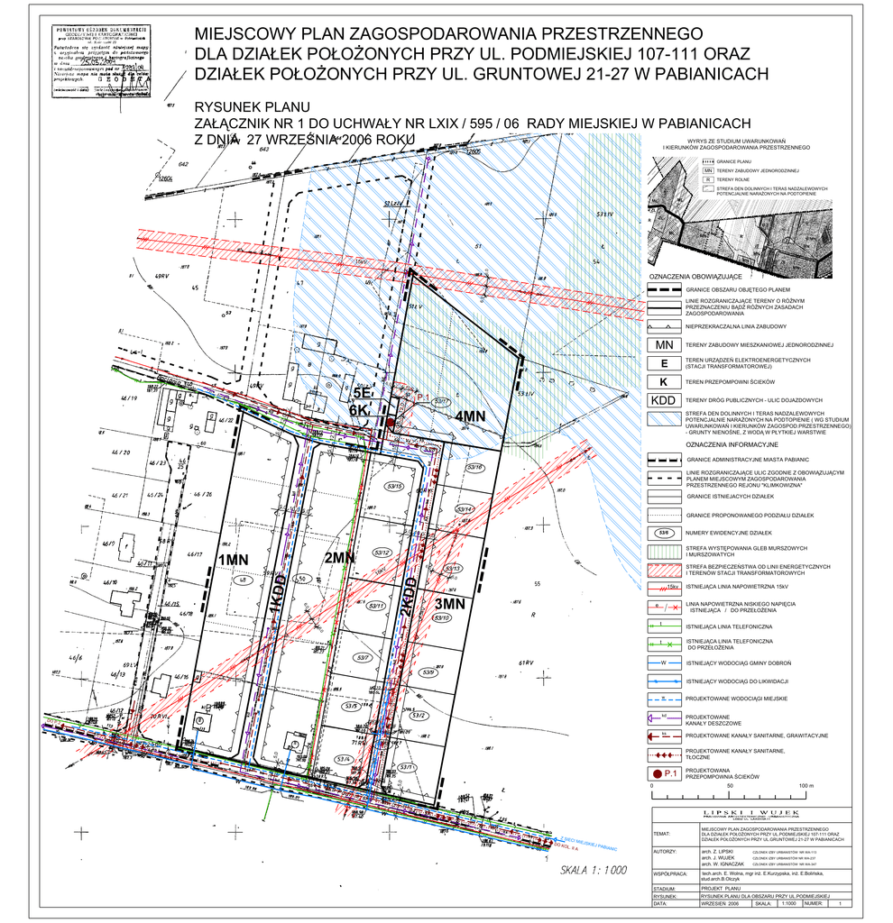 MIEJSCOWY PLAN ZAGOSPODAROWANIA PRZESTRZENNEGO DLA DZIAŁEK POŁOŻONYCH PRZY UL. PODMIEJSKIEJ 107-111 ORAZ DZIAŁEK POŁOŻONYCH PRZY UL. GRUNTOWEJ 21-27 W PABIANICACH RYSUNEK PLANU ZAŁĄCZNIK NR 1 DO UCHWAŁY NR LXIX / 595 / 06 RADY MIEJSKIEJ W PABIANICACH Z DNIA 27 WRZEŚNIA 2006 ROKU WYRYS ZE STUDIUM UWARUNKOWAŃ I KIERUNKÓW ZAGOSPODAROWANIA PRZESTRZENNEGO GRANICE PLANU MN R TERENY ZABUDOWY JEDNORODZINNEJ TERENY ROLNE STREFA DEN DOLINNYCH I TERAS NADZALEWOWYCH POTENCJALNIE NARAŻONYCH NA PODTOPIENIE 6,0 15kV OZNACZENIA OBOWIĄZUJĄCE 6,0 GRANICE OBSZARU OBJĘTEGO PLANEM kd LINIE ROZGRANICZAJĄCE TERENY O RÓŻNYM PRZEZNACZENIU BĄDŹ RÓŻNYCH ZASADACH ZAGOSPODAROWANIA NIEPRZEKRACZALNA LINIA ZABUDOWY kd MN 5E 6K 12, 0 kd 10,0 P.1 5,0 6,0 12,0 e 6,0 K TEREN PRZEPOMPOWNI ŚCIEKÓW KDD TERENY DRÓG PUBLICZNYCH - ULIC DOJAZDOWYCH STREFA DEN DOLINNYCH I TERAS NADZALEWOWYCH POTENCJALNIE NARAŻONYCH NA PODTOPIENIE ( WG STUDIUM UWARUNKOWAŃ I KIERUNKÓW ZAGOSPOD.PRZESTRZENNEGO) - GRUNTY NIENOŚNE, Z WODĄ W PŁYTKIEJ WARSTWIE OZNACZENIA INFORMACYJNE kd GRANICE ADMINISTRACYJNE MIASTA PABIANIC kd t TEREN URZĄDZEŃ ELEKTROENERGETYCZNYCH (STACJI TRANSFORMATOROWEJ) ks ks 15,0 t E 4MN 5,0 5,0 12 ,0 5,0 t TERENY ZABUDOWY MIESZKANIOWEJ JEDNORODZINNEJ w GRANICE ISTNIEJACYCH DZIAŁEK ks kd LINIE ROZGRANICZAJĄCE ULIC ZGODNIE Z OBOWIĄZUJĄCYM PLANEM MIEJSCOWYM ZAGOSPODAROWANIA PRZESTRZENNEGO REJONU "KLIMKOWIZNA" w 5,0 1 0 , 0 5,0 ks ks GRANICE PROPONOWANEGO PODZIAŁU DZIAŁEK 53/6 NUMERY EWIDENCYJNE DZIAŁEK e t 5,0 1 0 , 0 5,0 STREFA WYSTĘPOWANIA GLEB MURSZOWYCH I MURSZOWATYCH 2MN 6,0 V STREFA BEZPIECZEŃSTWA OD LINII ENERGETYCZNYCH I TERENÓW STACJI TRANSFORMATOROWYCH 6,0 15kv 15k V 2KDD k 15 6,0 1KDD 1MN 3MN ISTNIEJĄCA LINIA NAPOWIETRZNA 15kV LINIA NAPOWIETRZNA NISKIEGO NAPIĘCIA ISTNIEJĄCA / DO PRZEŁOŻENIA e t ks 6,0 ISTNIEJĄCA LINIA TELEFONICZNA ISTNIEJĄCA LINIA TELEFONICZNA DO PRZEŁOŻENIA W ISTNIEJĄCY WODOCIĄG GMINY DOBROŃ e ks t kd w t kd w ISTNIEJĄCY WODOCIĄG DO LIKWIDACJI w PROJEKTOWANE WODOCIĄGI MIEJSKIE kd PROJEKTOWANE KANAŁY DESZCZOWE ks PROJEKTOWANE KANAŁY SANITARNE, GRAWITACYJNE DO P .2 ks t P.1 kd 5,0 W ks PROJEKTOWANA PRZEPOMPOWNIA ŚCIEKÓW 0 50 100 m 12,0 w e PROJEKTOWANE KANAŁY SANITARNE, TŁOCZNE ks 5,0 kdks 12,0 W e W t kd ks w ks Z SIE CI MIE JSKIE DO K J PAB OL. II IANIC A TEMAT: AUTORZY: WSPÓŁPRACA: MIEJSCOWY PLAN ZAGOSPODAROWANIA PRZESTRZENNEGO DLA DZIAŁEK POŁOŻONYCH PRZY UL.PODMIEJSKIEJ 107-111 ORAZ DZIAŁEK POŁOŻONYCH PRZY UL.GRUNTOWEJ 21-27 W PABIANICACH arch. Z. LIPSKI arch. J. WUJEK arch. W. IGNACZAK CZŁONEK IZBY URBANISTÓW NR WA-113 CZŁONEK IZBY URBANISTÓW NR WA-237 CZŁONEK IZBY URBANISTÓW NR WA-347 tech.arch. E. Wolna, mgr inż. E.Kurzypska, inż. E.Bolińska, stud.arch.B.Olczyk STADIUM: PROJEKT PLANU RYSUNEK: DATA: RYSUNEK PLANU DLA OBSZARU PRZY UL.PODMIEJSKIEJ 1:1000 NUMER: WRZESIEŃ 2006 SKALA: 1