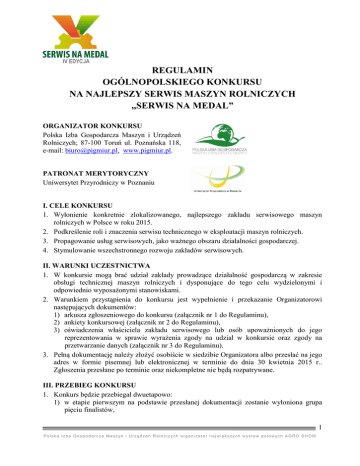 regulamin ogólnopolskiego konkursu na najlepszy serwis maszyn