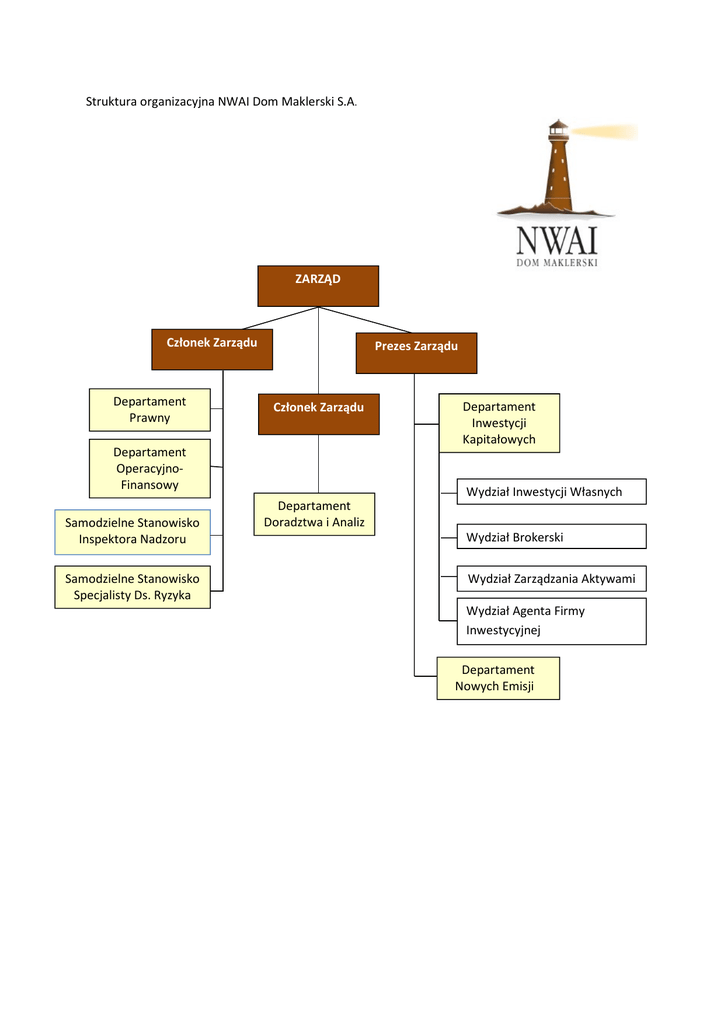Struktura organizacyjna NWAI Dom Maklerski S.A. Departament