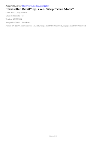 "Bestseller Retail" Sp. z oo Sklep "Vero Moda", Lodz