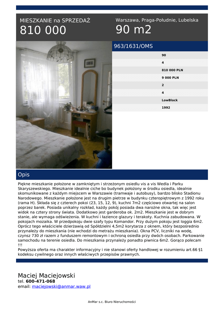 810 000 90 m2 - AnMar s.c. Biuro nieruchomości