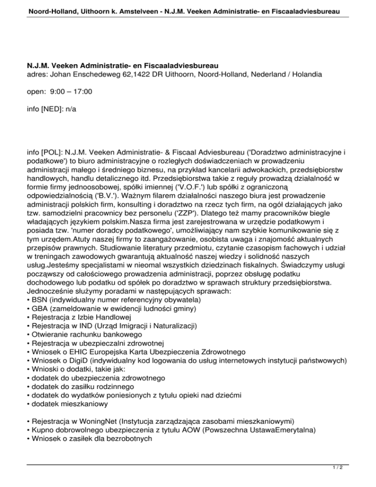 info [POL]: N.J.M. Veeken Administratie- & Fiscaal Adviesbureau ('Doradztwo administracyjne i