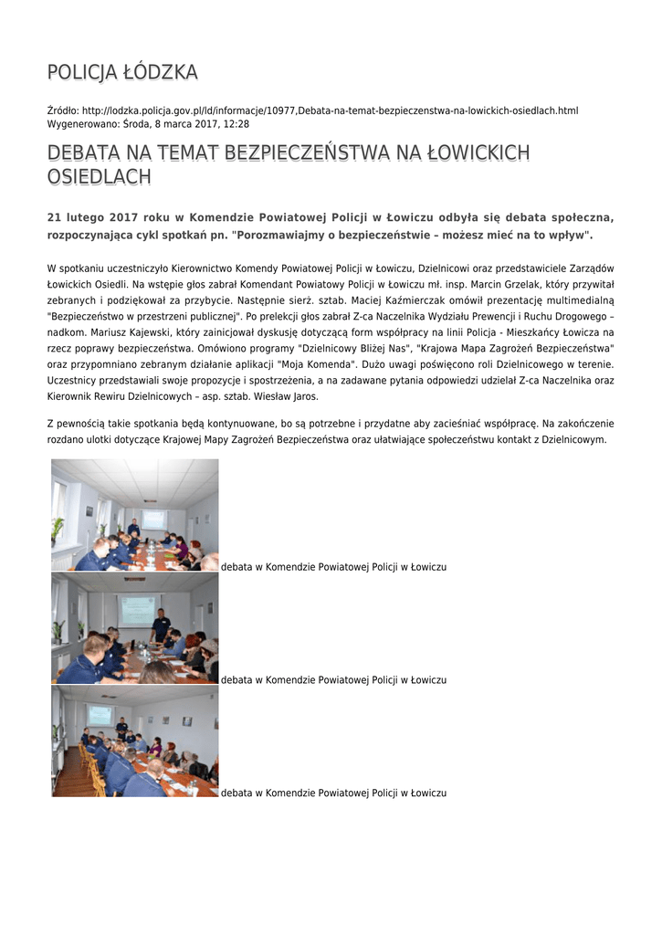 POLICJA ŁÓDZKA DEBATA NA TEMAT BEZPIECZEŃSTWA NA