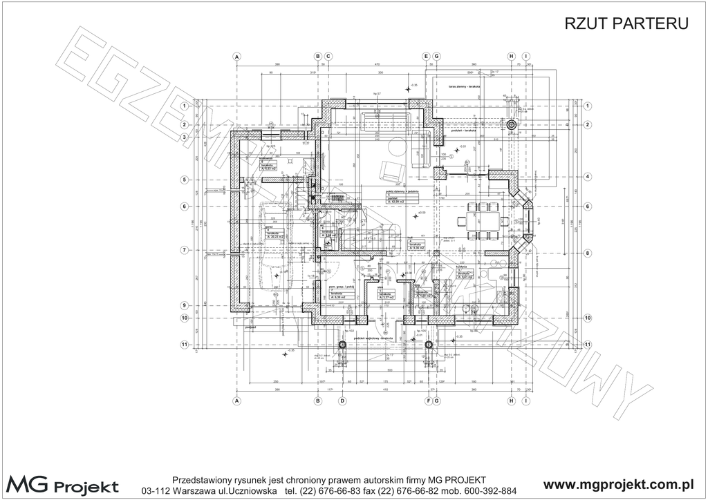 RZUT PARTERU C E 3155 H 50 5955 300 -0.35 70 taras ziemny - terakota 200 43 90 45 450 250 250 197 207 n1 250 o4 70 143 43 25 18 70 .6 0 8 18 312 150 90 hp 43 25 hp.90 18 10 255 o2 90 25 90 335 1375 77 180 78 43 2605 180 150 60 120 o1 10 hp.90 -0.35 175 35 25 up S-2 elbet. d= 25 cm 2x 17 35 125 up S-2 elbet. d= 25 cm 125 5 25 5 25 35 5 25 5 35 25 35 500 1975 65 1175 525 175 415 D 11 35 140 128 80 hp.105 -0.01 35 175 -0.35 B 1 196 225 1 196 45 25 595 25 287 20 20 20 25 25 115 102 30 w.19x19 43 43 dw 11 A 3165 hp.60 o3 25 170 225 43 18 hp.102 390 6675 18 60 0 70 141 281 343 120 180 43 100 60 o7 podcie wej ciowy -terakota 250 s upek z ceg y pe nej 18 62 25 43 12 12 355 10 kuchnia 3 terakota A: 9,61 m2 10 2105 170 205 220 25 115 205 spi . 2 terakota A: 1,60 m2 5 60 120 43 25 220 172 12 12 405 5 60 25 80 200 12 80 200 sie 1 terakota A: 3,37 m2 o7 5 d2 ±0.00 335 up 25x25 elbet. S-1 102 110 89 160 pom. gosp. / pokój 7 terakota A: 6,39 m2 2105 pochylnia h=15 L=100 18 100 128 podjazd 823 27 835 89 12 26 25 115 15 12 89 d1 11 d1 80 200 160 168 225 250 25 43 445 60 10 25 6 27 25 25 115 161 holl 4 terakota A: 9,36 m2 68 287 30 27 100 106 15 25 217 30 89 55 WG 100 458 200 27 17 x 18,0 27 172 250 108 50 43 25 43 25 25 d2 89 2x 18 27 10 18 97 297 d1 70 45 25 447 89 1x 18 242 80 200 205 780 ±0.00 25 145 5 200 185 12 200 -0.36 10 580 80 100 wc 6 terakota A: 2,00 m2 25 hp.30 12 12 58 0 -0.18 267 5 32 10 25 12 w.19x19 25 pokój dzienny + jadalnia 5 parkiet A: 42,09 m2 27 4 18 naw. 15x15 15 15 200 235 w.19x19 40 12 upek z ceg y pe nej upek z ceg y pe nej 7 235 60 gara 8 terakota A: 20,23 m2 35 35 db1 350 w.19x19 20x20(16x16) kam. 69 + INOX d=15 55 157 328 355 2 220 195 5 25 20 20 20 20 20 25 250 43 25 268 1 196 293 18 100 12 10 25 25 4 128 133 25 30 15 hp.220 15 25 25 o4 6 150 510 0 .6 d1 1 18 360 368 365 kot ownia 9 terakota A: 6,53 m2 45 8 18 25 90 18 25 hp 15 15 wyw. 15x15 15 25 43 15 15 168 80 25 200 5 9 50 -0.01 90 20x20(16x16) kam. + INOX d=15 107 180 205 25 43 8 300 180 50 podcie - terakota 725 895 90 90 428 25 25 300 445 545 hp.125 18 8 25 10 hp.30 725 3 128 43 18 60 18 2 45 10 up S-2 elbet. d= 25 cm o5 90 o6 1 196 210 43 25 305 90 15 305 2x 17 35 hp.57 1 I 360 s upek z ceg y pe nej 90 G 470 305 50 98 390 35 B A 35 525 65 1295 375 F G 180 191 360 70 H Przedstawiony rysunek jest chroniony prawem autorskim firmy MG PROJEKT 03-112 Warszawa ul.Uczniowska tel. (22) 676-66-83 fax (22) 676-66-82 mob. 600-392-884 305 I www.mgprojekt.com.pl RZUT PODDASZA B A 305 3595 C 305 E 1 381 470 50 H 50 390 360 I 305 991 1005 1005 430 225 539 1025 46 4605 1025 4605 406 75 1 605 12 535 14 295 up 14x14 drewn. 3405 25 43 db2 18 220 230 991 225 70 95 o10 hp.70 95 330 312 3635 1235 1415 348 h=180 cm 78 1285 43 43 120 10 124 124 18 43 60 305 295 305 12 12 4725 225 1275 10 2995 545 725 253 43 25 305 18 pow.pod ogi A: 12,92 m2 w.19x19 10 1495 19 210 347 78 pow.pod ogi A: 16,35 m2 3475 azienka 15 terakota A: 9,77 m2 102 1195 12 90 90 150 43 25 43 25 sypialnia 14 parkiet A: 15,29 m2 12 96 18 2995 1335 300 295 267 h=180 cm 123 90 333 245 6 183 181 331 155 8 up 14x14 drewn. d1 3745 89 62 43 75 12 248 up 14x14 drewn. 347 220 43 12 385 12 995 db3 1545 17 d1 93 12 2245 80 200 12 150 75 1235 236 585 89 1115 90 5 16 225 200 12 242 30 80 200 89 holl 11 parkiet A: 5,93 m2 12 +2.70 17 x 18,0 27 216 303 12 d2 +3.06 1815 80 200 7 +2.16 100 1055 12 100 18 podci g poz. 1.9 200 106 schody na strych 70x120 6 89 90 5 12 107 100 895 5 89 5175 785 871 2x18 80 32 220 168 +2.34 135 210 991 pow.pod ogi A: 27,41 m2 d1a 6 9 95 43 d1 14 305 3475 3475 143 12 70 121 4 80 200 up 14x14 drewn. 176 89 90 150 75 3745 275 253 210 pow.pod ogi A: 20,28 m2 70 137 128 wy az dach183 49x61 cm 18 o10 pow.pod ogi A: 18,48 m2 5295 95 25 25 43 sypialnia 13 parkiet A: 16,60 m2 1435 20 up 14x14 drewn. 381 381 12 sypialnia 12 parkiet A: 17,28 m2 5 strych / pokój 13 wyk adzina A: 18,13 m2 1285 2375 239 347 h=180 cm 78 408 330 2015 h=180 cm hp.70 12 12 250 100 485 485 2 90 220 230 db2 225 1025 25 43 347 347 1335 25 43 205 18 43 25 43 18 575 18 3805 3 25 43 2 60 305 295 305 18 94 balkon - terakota 94 1 G balkon - terakota 11 1215 1155 1155 305 390 3595 11 468 225 480 1275 4015 3955 3955 1275 75 991 305 1175 415 375 360 305 1 381 A B D F G H Przedstawiony rysunek jest chroniony prawem autorskim firmy MG PROJEKT 03-112 Warszawa ul.Uczniowska tel. (22) 676-66-83 fax (22) 676-66-82 mob. 600-392-884 I www.mgprojekt.com.pl PRZEKRÓJ 5,0 5,0 2,5 dachówka ceramiczna *** aty 5x6 cm kontr aty 2,5 x 5 cm folia wiatrochronna paroprzepuszczalna do zewn trz 20,0 krokwie 7x20 cm 5,0 5,0 2,5 dachówka ceramiczna *** aty 5x6 cm kontr aty 2,5 x 5 cm folia wiatrochronna paroprzepuszczalna do zewn trz 20,0 krokwie 7x20 cm 45 5 42 5 205 5 265 121 25 260 25 95 5 54 5 wieniec 19x25 cm zbr. 4#12 strzem. o6 co 25 45 24 45 24 +2,70 +2,65 10 +2,55 docieplenie podcienia od spodu stropu : 15 cm - styropian " ciana" + tynk cienkow. 181 25 18 10 25 10 265 270 180 30 59 60 ytki klinkierowe na zapr. klejowej na styrodurze ±0,00 ±0,00 36 -0,35 awa fundamentowa h= 40 cm + podk ad chudobetonowy 10cm 2,0 posadzka - terakota 10,0 p yta elbetowa B15 zbr. siatkami #3 co 15 cm folia PE 0,2 mm x 3 15,0 podk ad chudobetonowy piasek do g . gruntu rodzimego 59 40 40 -1,35 tynk cienkowarstwowy **** 18,0 styropian * 25,0 ciana z porothermu 25P+W -1,45 na zapr. cementowo-wap. tynk cementowo-wap. -0,95 100 -0,95 fundament dolnego biegu schodowego -0,35 -1,35 -1,35 10 schody monolityczne po czone z b yt stropow - grubo p yty biegowej 15 cm zbrojenie schodów #12 co 12 cm + ok adzina 2cm - np. terakota na kleju 30 30 60 -0,68 -0,35 35 2 15 6 38 15 -0,38 30 2 15 6 38 15 30 95 5 18 44 62 8 15 fundament pod cian dzia ow wylewka beton. folia kube kowa 12,0 styropian * izol. przeciwwilgociowa - prepar. nufoflex 2x tynk cement. - szpryc kl. I 24,0 ciana z bloczków betonowych gr. 24 cm na zapr. cement . +3,10 +2,94 15 66 +2,59 +2,40 +3,6525 18 15 16 nadpro e 25x25 cm podci g poz. 1.4 45x 25 cm +2,84 +2,69 29 16 podci g poz. 1.