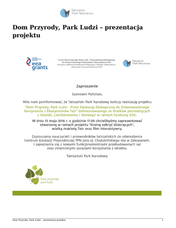 Dom Przyrody, Park Ludzi – prezentacja projektu Dom Przyrody, Park Ludzi – prezentacja projektu 1
