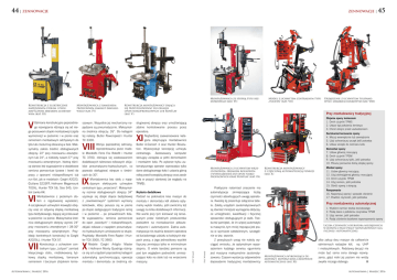 44 | ZENNOWACJE ZENNOWACJE | Montażownica ze stopką typu bez łyżkowego (kat. VI) Odmiana konstrukcyjna poprzedniego rozwiązania różniąca się od niego przesuwem stopki montażowej (często wymiennej) w poziomie i w pionie oraz ramieniem montażowym odchylanym do tyłu lub z kolumną obracaną w bok. Maksymalny zakres średnic obsługiwanych obręczy: 22” przy mocowaniu zewnętrznym lub 24”, a niekiedy nawet 27” przy mocowaniu wewnętrznym. Istotną różnicę stanowi też wyposażenie w dodatkowe ramiona pomocnicze (prawe i lewe) do pracy z oponami niskoprofilowymi lub run flat, jak w modelach: Corghi A2020, Giuliano S233FP, Hofmann Megamount 703XL, Hunter TCX 56, Sice S45, Unitrol Janka KK. Montażownice z poziomym stołem o regulowanej wysokości, 4-szczękowym uchwytem krawędzi obręczy oraz ze sztywną stopką montażową typu bezłyżkowego, dającą się przesuwać w poziomie i w pionie. Maksymalna średnica obsługiwanych obręczy wynosi 24” przy mocowaniu zewnętrznym i 28-30” przy mocowaniu wewnętrznym. Przykłady konkretnych konstrukcji to Corghi A2025LL i Hunter TCX 57. Konstrukcja z uchwytem centralnym typu „tulipan” zamiast klasycznego stołu, nieblokowaną łyżkową stopką montażową, łamanym ramieniem i bocznym zbijakiem lemie- VI VII Autonaprawa | Marzec 2016 Konstrukcja montażownicy dająca się przystosowywać do obsługi opon niskoprofilowych lub RunFlat (kat. V) szowym. Wszystkie jej mechanizmy napędzane są pneumatycznie. Maksymalna średnica obręczy: 26”. Do kategorii tej należą: Butler Powerspeed i Hunter TC 3300. Wersja poprzedniej odmiany, reprezentowana przez modele Mondolfo Ferro Fox Robofit i Hunter TC 3700, różniąca się zastosowaniem dodatkowych talerzowo-rolkowych zbijaków pneumatyczno-hydraulicznych, co pozwala obsługiwać obręcze o średnicach do 30”. M ontażownica bez stołu z napędzanym elektrycznie uchwytem centralnym typu „wrzeciono”. Maksymalny rozmiar obsługiwanych obręczy 34” uzyskuje się dzięki stopce bezłyżkowej z „rewolwerowym” systemem wymiany końcówek, który porusza się w pionie po słupie zastępującym tradycyjne ramię i w poziomie – po prowadnicach łoża. W wyposażeniu: ramiona pomocnicze do opon „twardych” i niskoprofilowych, zbijaki rolkowe z napędem pneumatyczno-hydraulicznym umieszczone w słupie. Przykłady: Mondolfo Ferro Raptor i Hunter TCX 3000, TC 3900. Modele Corghi Artiglio Master i Hofmann Monty Quadriga różniące się od urządzeń poprzedniej kategorii automatyką synchronizującą operacje montażu i demontażu ze średnicą ob- VIII IX X Zbijanie opony lemieszem 1. Omiń czujniki TPMS 2. Ustaw kąt położenia lemiesza 3. Chroń obręcz przed uszkodzeniem sługiwanej obręczy oraz umożliwiającą zdalne kontrolowanie procesu przez operatora. Najbardziej zaawansowana kategoria obejmująca montażownice Butler A.Concert 4 oraz Hunter Revolution. Wykorzystuje koncepcję uchwytu centralnego. Zastosowany komputer sterujący zarządza w pełni demontażem i montażem koła. Po wyborze trybu automatycznego operator wprowadza tylko dane obsługiwanego koła i ustawia górną rolkę przed krawędzią obręczy oraz zawór koła w pozycji startowej (ze względu na TPMS). Zaciskanie/mocowanie opony 4. Mocuj wewnętrznie lub zewnętrznie 5. Użyj ochraniaczy szczęk jeśli potrzeba 6. Ustaw szczęki do rozmiaru koła XI Kryteria dodatkowe Podział na jedenaście klas maszyn do montażu i demontażu kół ułatwia optymalny wybór modelu, jeśli zwrócimy też uwagę na kilka dodatkowych informacji. Nie warto przy tym kierować się lansowanym przez niektórych producentów podziałem na montażownice półautomatyczne i automatyczne. Żadna automatyzacja nie zwalnia bowiem operatora od świadomego udziału w kolejnych etapach pracy, a jego jednostkowy wysiłek fizyczny zmniejsza tylko w minimalnym stopniu. O wiele bardziej pomocne są pod tym względem podnośniki umieszczające koła na stole lub na wrzecionie maszyny. Urządzenie z uchwytem tulipano wym i zbijakiem rolkowym (kat. VIII) Przy montażownicy tradycyjnej Demontaż opony 7. Ustaw głowicę mocującą 8. Omiń czujniki TPSM 9. Użyj ochraniaczy łyżki, jeśli potrzeba 10. Poluzuj ponownie dolną stopkę opony Montażownica z uchwytem wrze cionowym, zbijakiem rolkowym i wyposażeniem do opon nisko profilowych oraz RunFlat (kat. IX) Fot. Wimad V Montażownica z ramieniem przesuwnym zamiast zawiaso wego (kat. IV) Fot. Wimad Konstrukcja z elektrycznie napędzanym stołem i pneu matycznym zbijakiem lemieszo wym (kat. III) Model z uchwytem centralnym typu „tulipan” (kat. VII) 45 Praktyczne natomiast znaczenie ma automatyzacja zmniejszająca liczbę czynności absorbujących uwagę operatora. Kwestię tę prezentuje załączona tabela. Zaletą urządzeń zautomatyzowanych są również mniejsze wymagania dotyczące umiejętności, kwalifikacji i fizycznej sprawności obsługujących je osób. Trzeba też pamiętać, że im więcej automatyki w maszynie, tym mniej męcząca jest praca w wymiarze całodziennym, szczególnie w tzw. sezonie. Z powyższych uwag nie należy wyciągać wniosku, że optymalnym wyposażeniem każdego serwisu ogumienia jest maszyna maksymalnie zautomatyzowana. Czasem wystarczy odpowiednie doposażenie tradycyjnej montażownicy Konstrukcja montażownicy z częściową automatyzacją funkcji (kat. X) Montaż opony 11. Ustaw głowicę mocującą 12. Użyj dolnej/górnej głowicy mocującej 13. Omiń czujniki TPSM 14. Użyj ramion, jeśli potrzeba 15. Obróć oponę z obręczą Pompowanie 16. Napompuj oponę i sprawdź ciśnienie 17. Powtórz czynność, jeśli potrzeba Przy montażownicy automatycznej 1. Wybierz rozmiar stożka dociskowego 2. Podaj dane o położeniu czujników TPSM 3. Użyj ramion, jeśli potrzeba 4. Podaj ciśnienie docelowe napompowania opony Liczba czynności operatora niezbędnych w jednym cyklu pracy montażownicy kla sycznej i automatycznej Montażownica wy